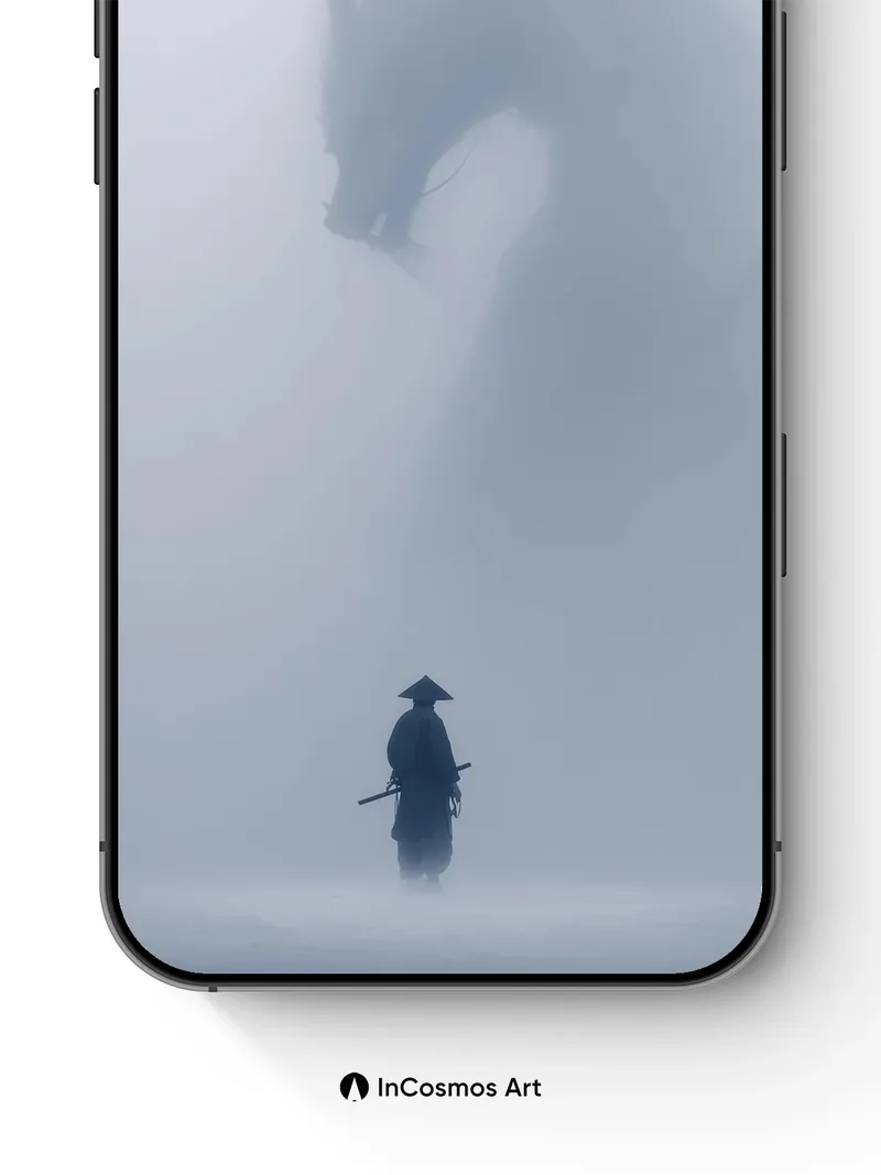 Mist-Silhouetted Dragon Wallpaper with Samurai Solitude