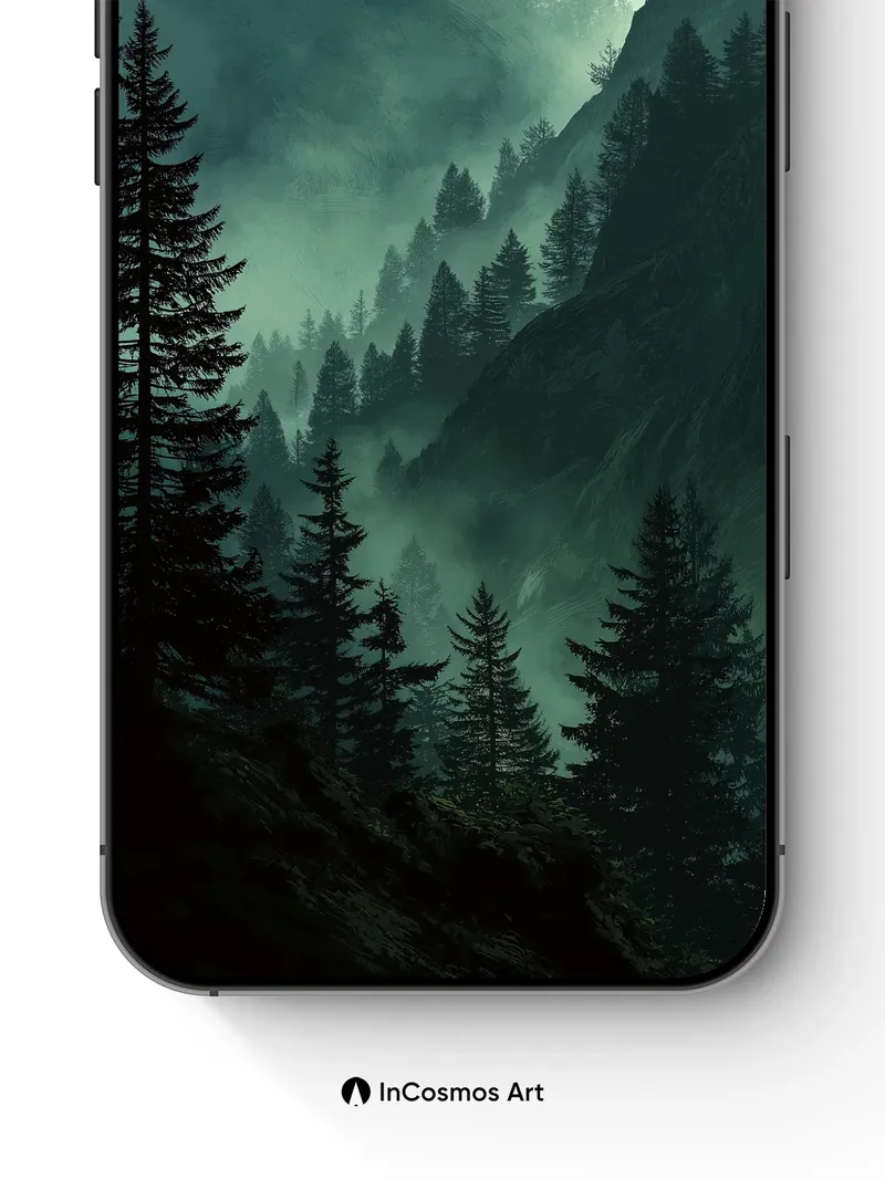 Mist-veiled Forest Wallpaper with Whispering Pines