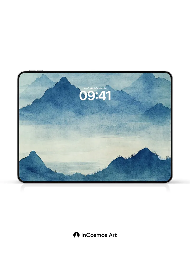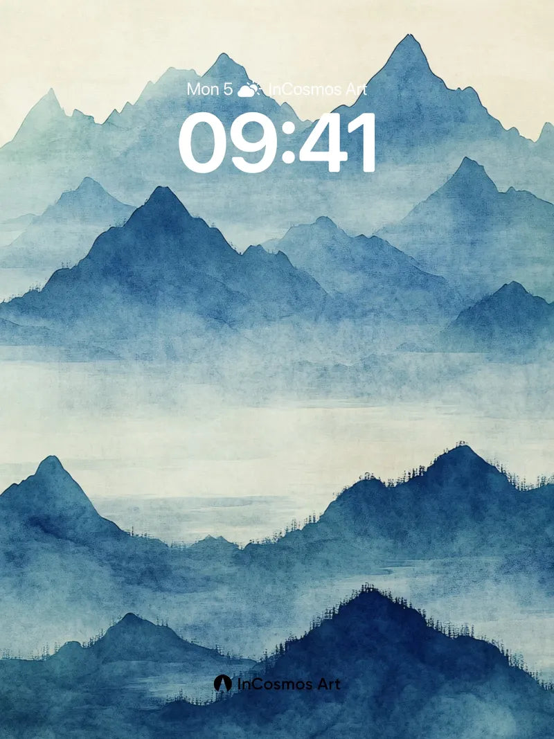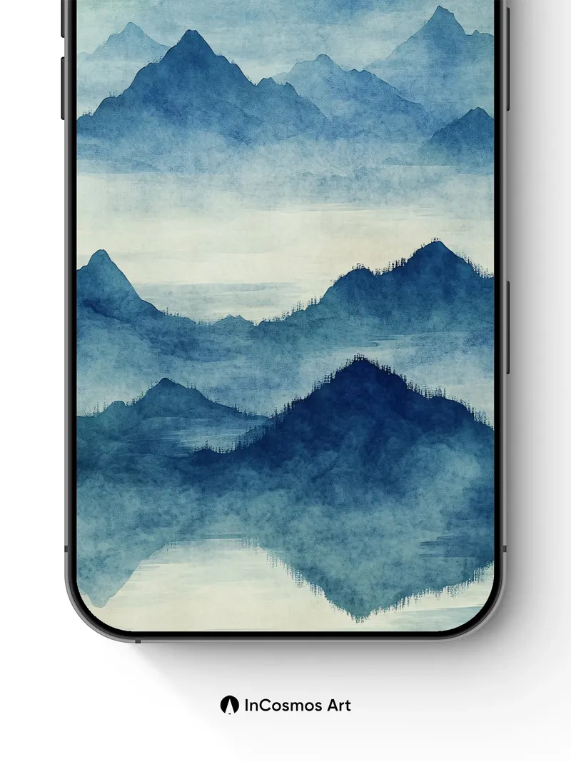 Mist-veiled Mountain Wallpaper in Ink Blue Hues