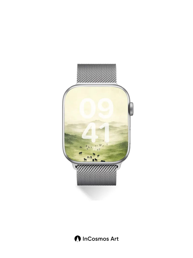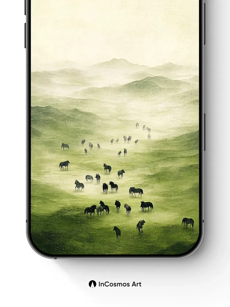 Mist-Whispered Herd Wallpaper with Rolling Green Veils