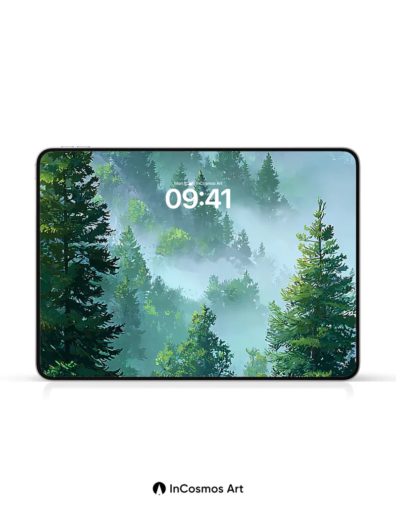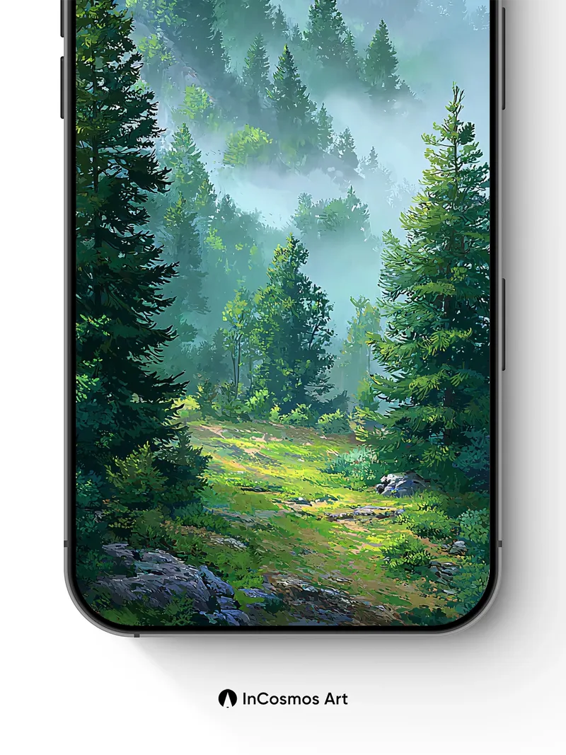 Mist-Whispered Pine Wallpaper with Sunlit Trails