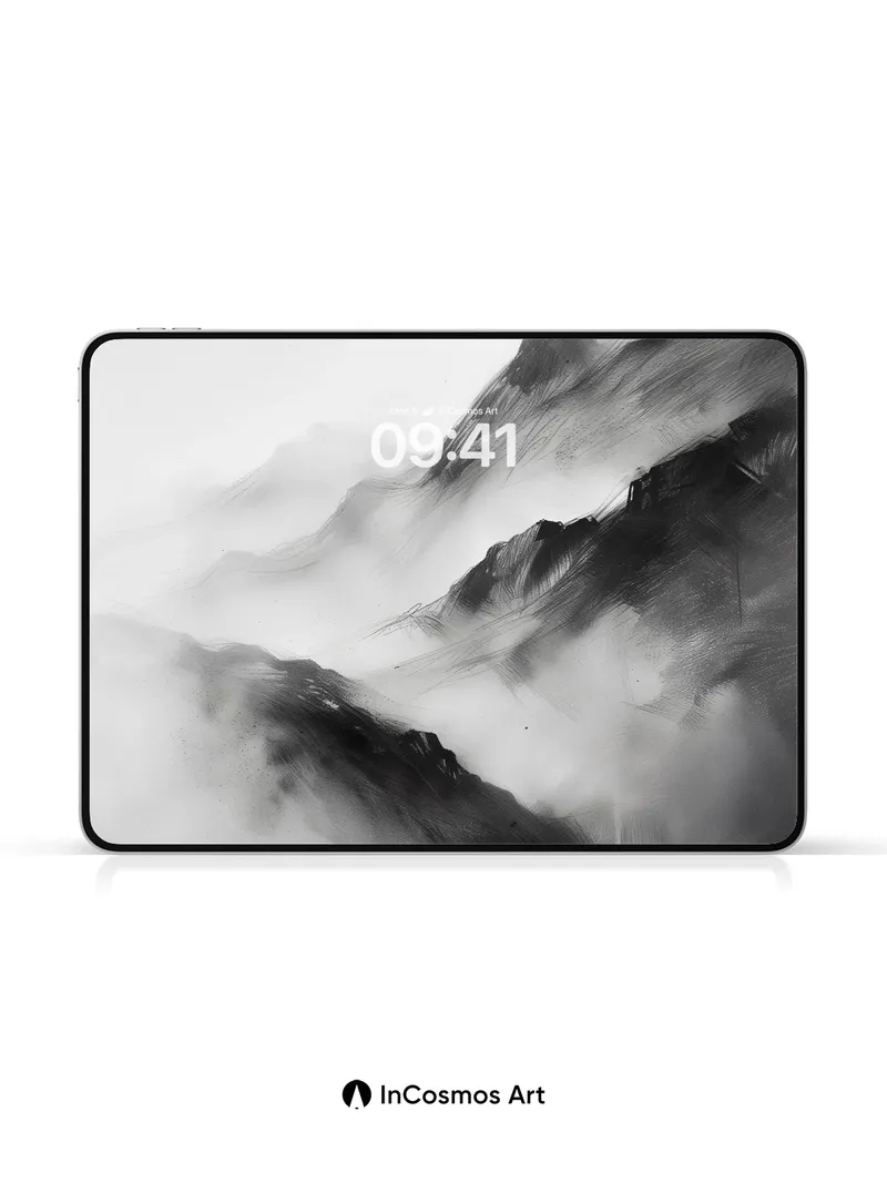 Mist-Wrapped Peaks Wallpaper in Monochrome Hush