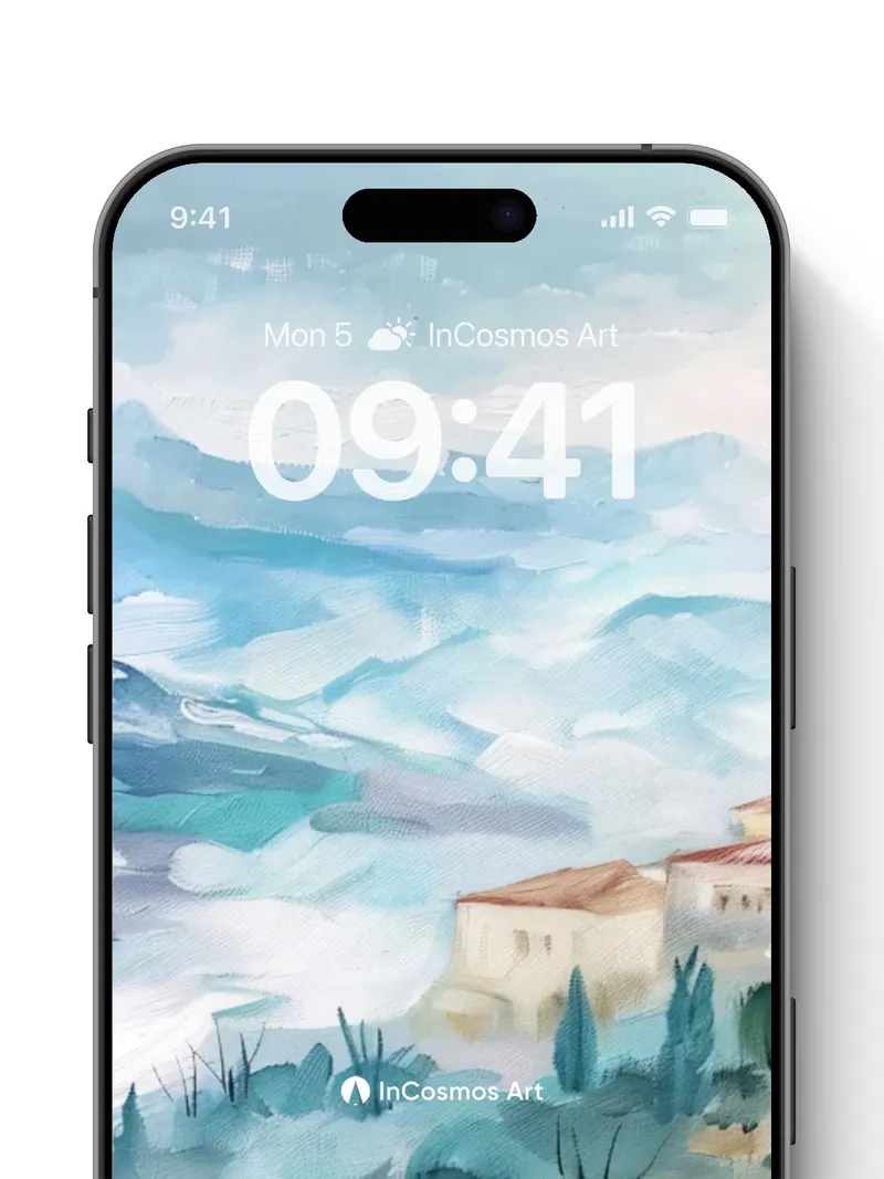 Debug product.metafields.custom.desc: Did you know that ancient Mediterranean settlements were often built on hills to harness morning mist as a natural cooling system? Here, soft watercolor light crawls over terracotta roofs and cypress trees like breath across still air. The distant mountain looms in hazy blue, while cherry blossoms bleed into the valley below—each brushstroke a quiet memory of time suspended.