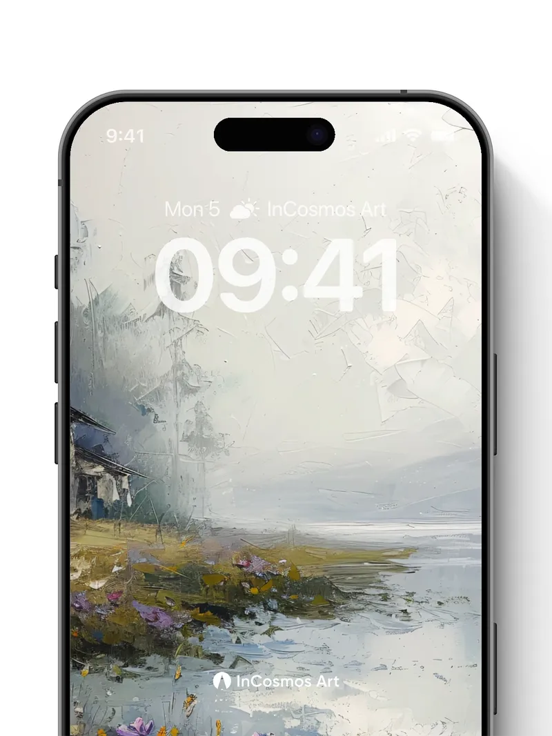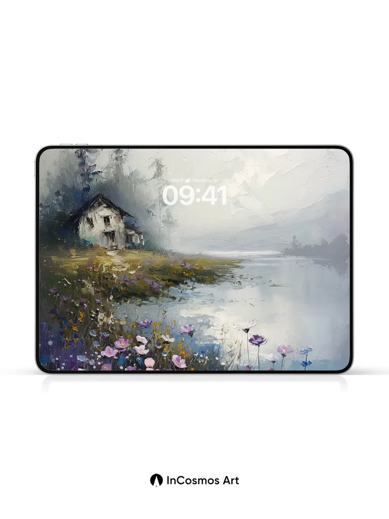 Debug product.metafields.custom.desc: Did you know that certain wildflowers bloom only when touched by morning mist? Here, they rise like silent prayers along the water’s edge, their petals brushing against a lake that mirrors the sky in soft, hazy strokes. The old cottage watches from the shore, its weathered walls breathing quiet stories into the fog, while color slips through the air like silk woven by dawn.