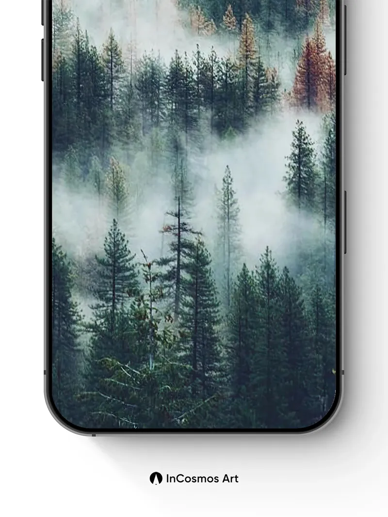 Misty Pine Silence Wallpaper with Distant Firelight