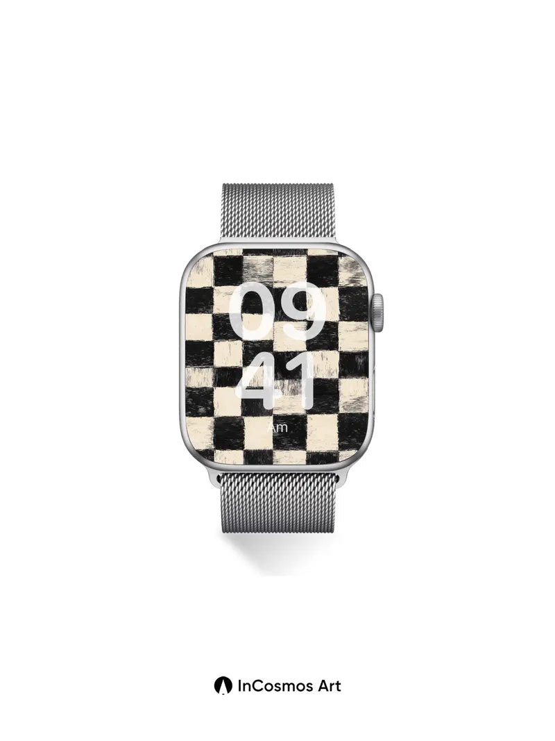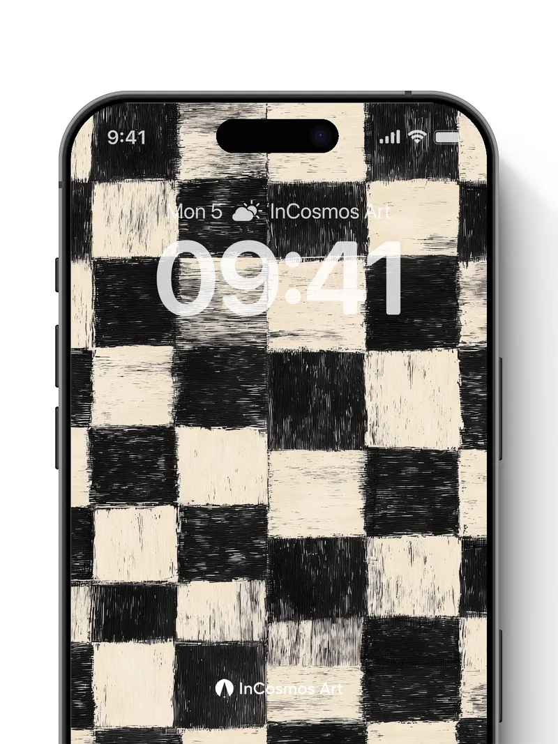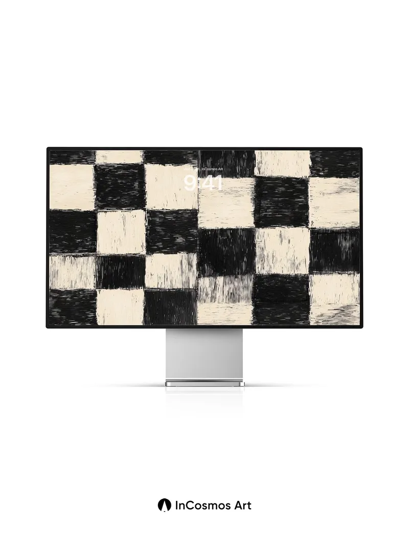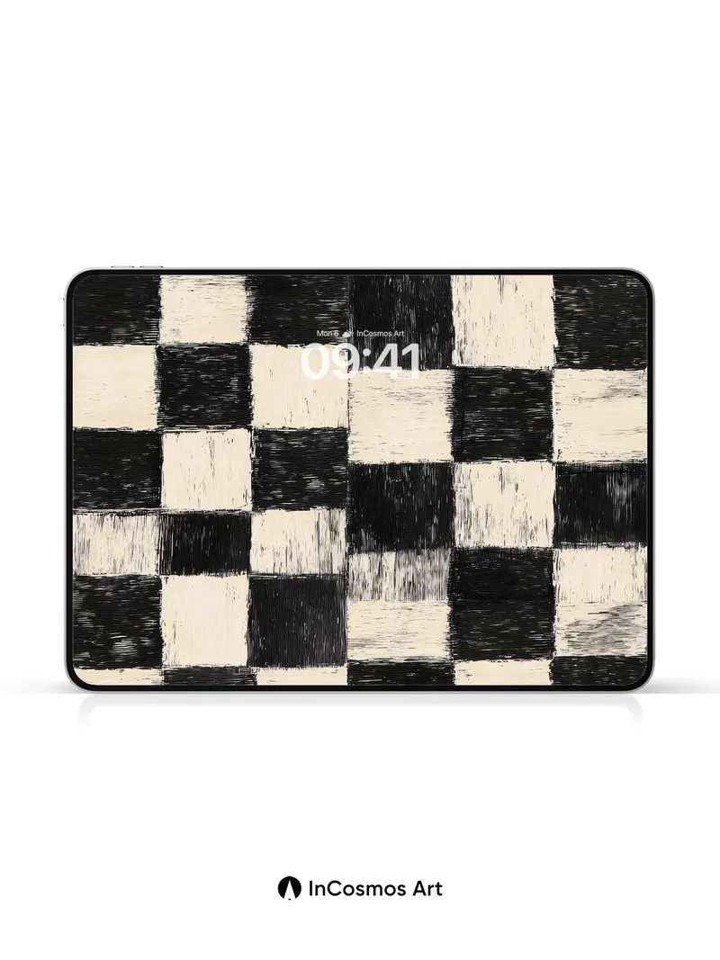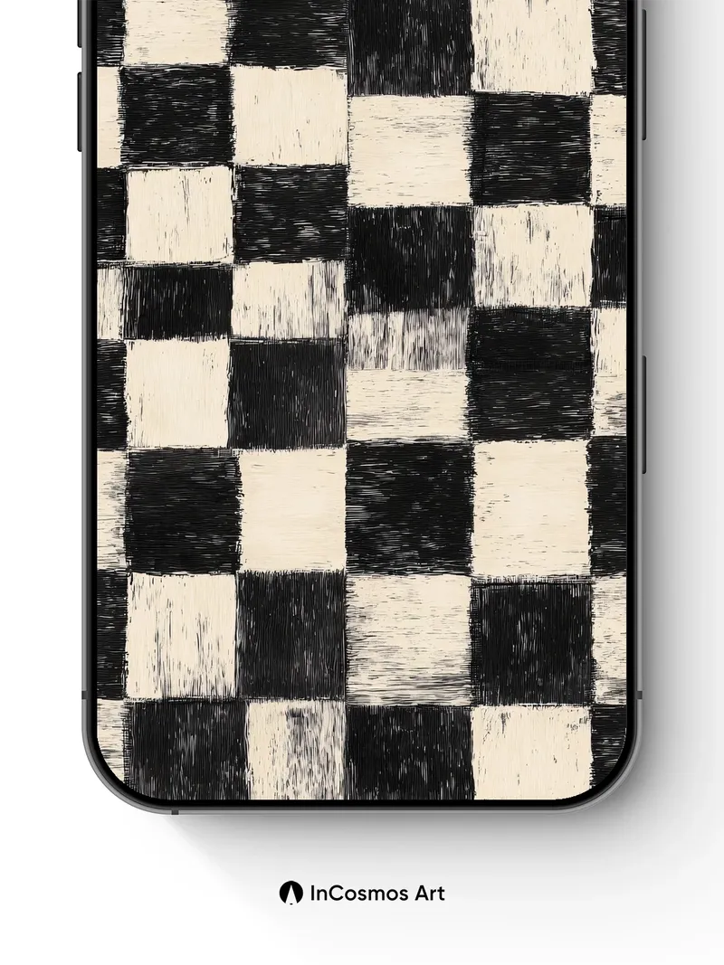 Monochrome Chessboard Wallpaper with Textured Brushwork