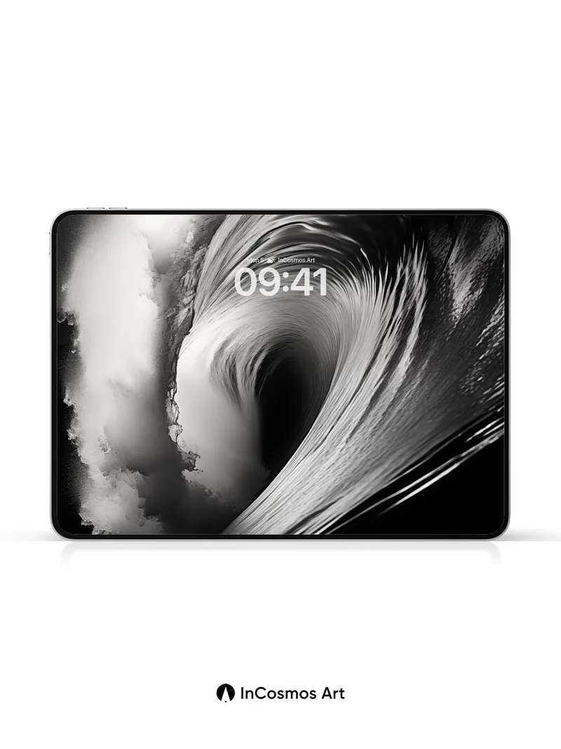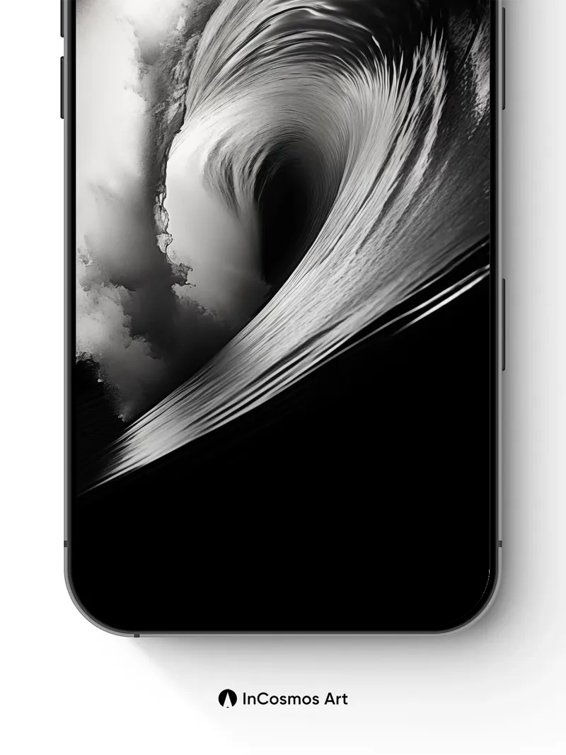 Monochrome Surge Wallpaper with Cloud-Whirl Texture