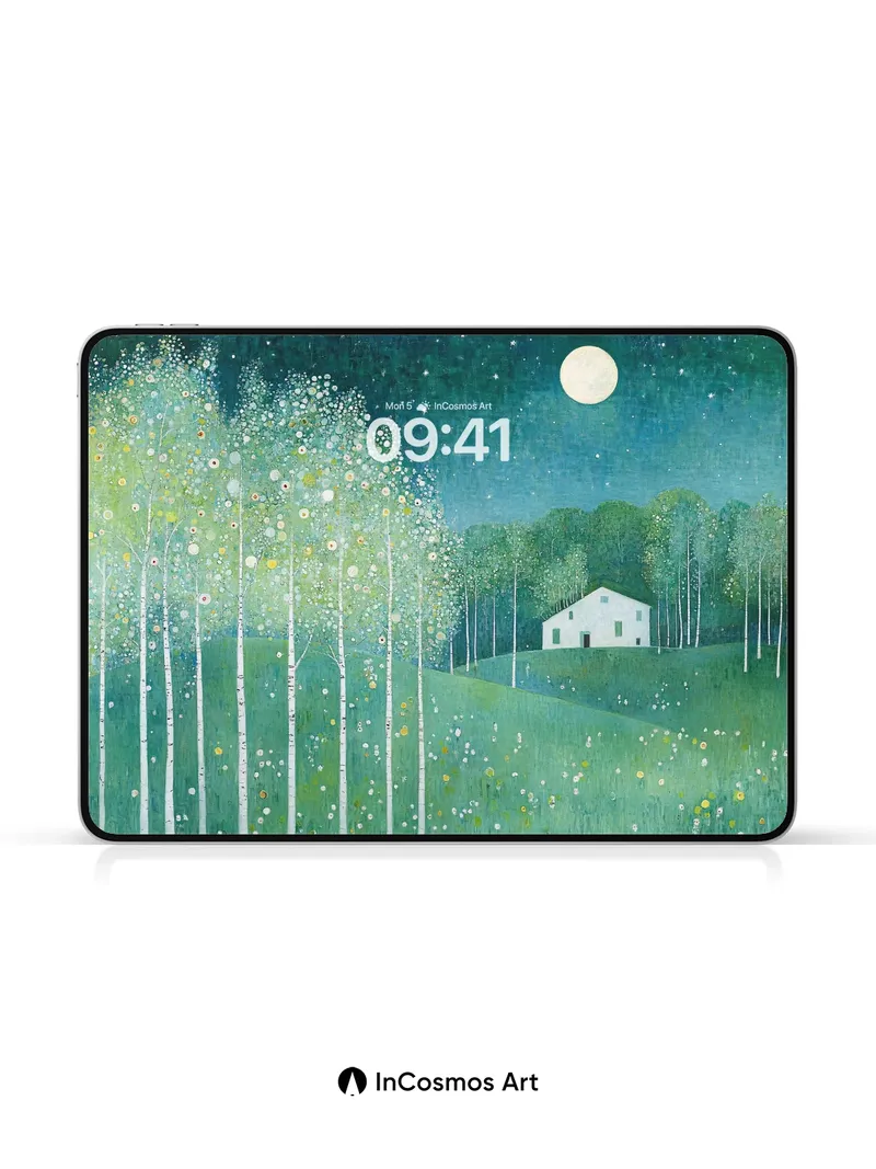 Moonlit Birch Forest Wallpaper with Whispering Light