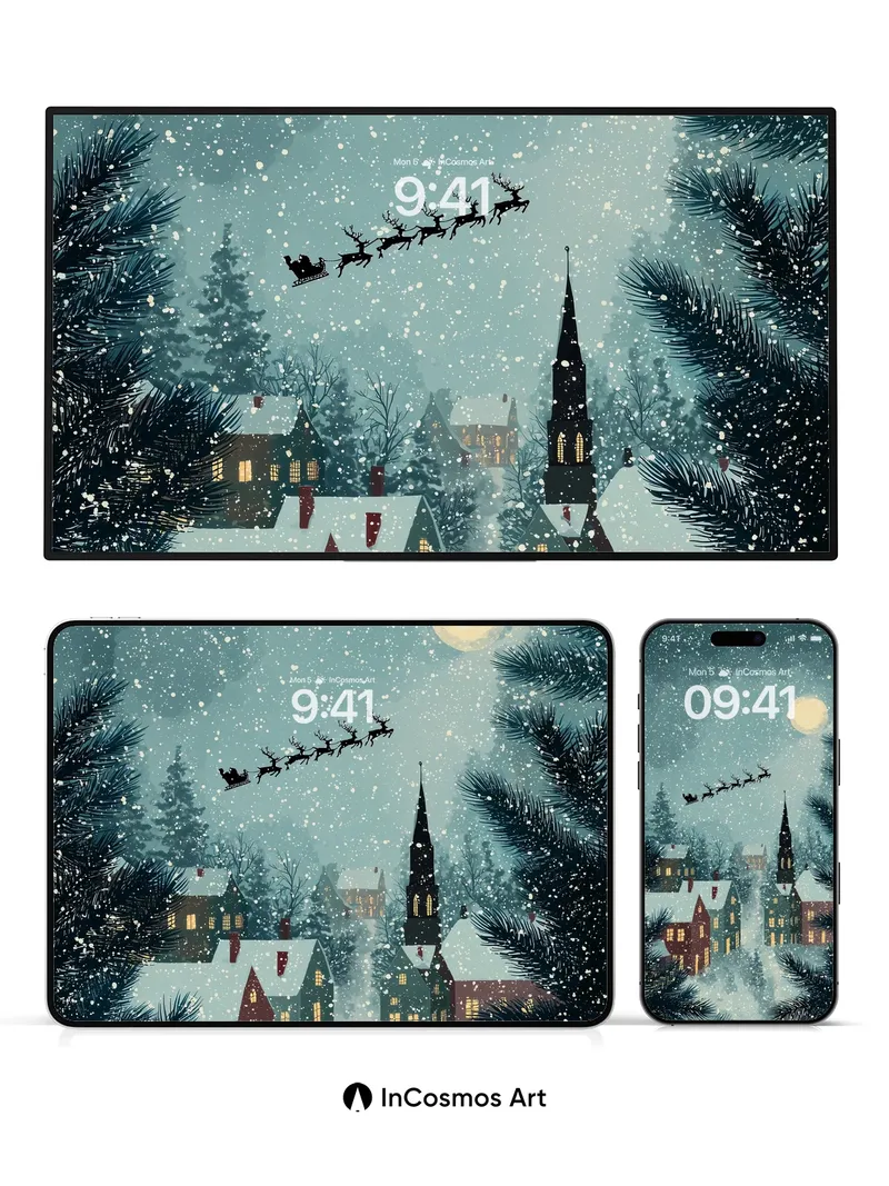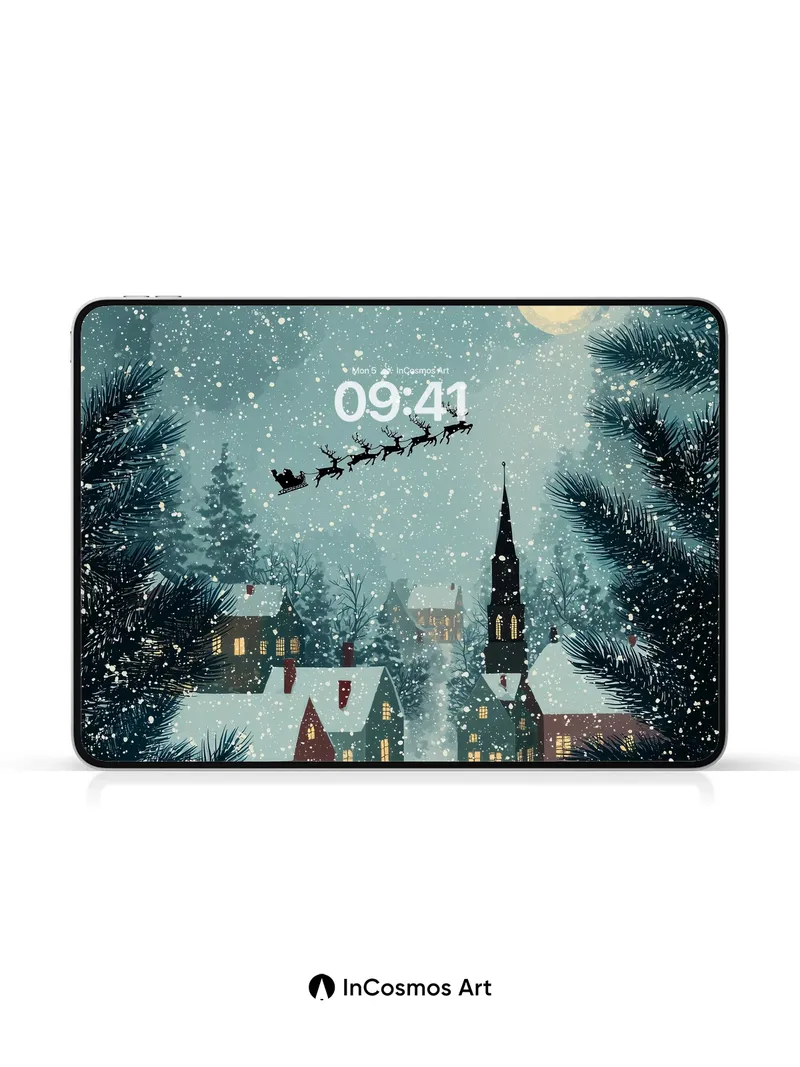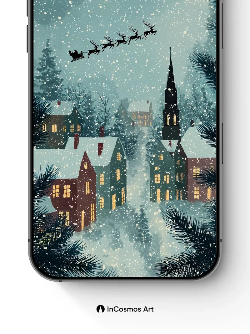 Debug page_description: Did you know snowflakes form unique hexagonal patterns as they descend through freezing air, each one a tiny crystal sculpture? Tonight, the moon casts a silver glow over rooftops dusted in fresh powder, while reindeer silhouettes cut across the sky like whispered secrets. Warm light spills from windows, breathing life into stone and timber, as if the village holds its breath beneath the stars. Share this with your best friend. Send this to your love and swap a matching set. What if every snowflake carried a wish from the sky?