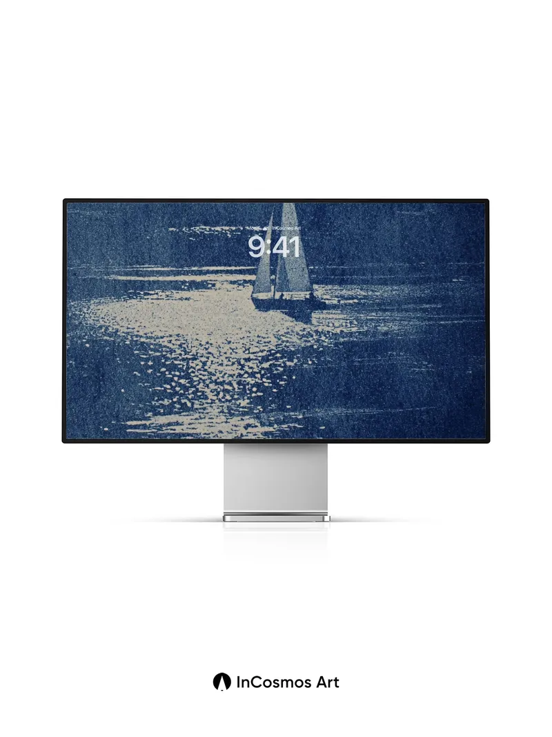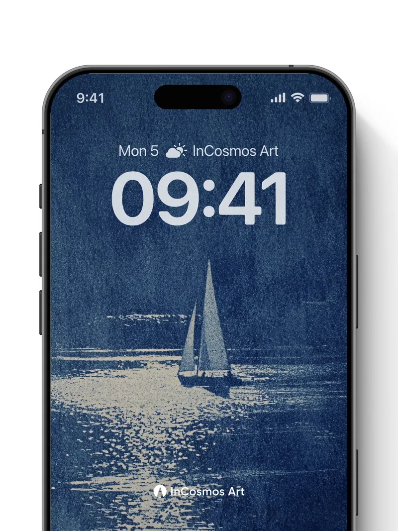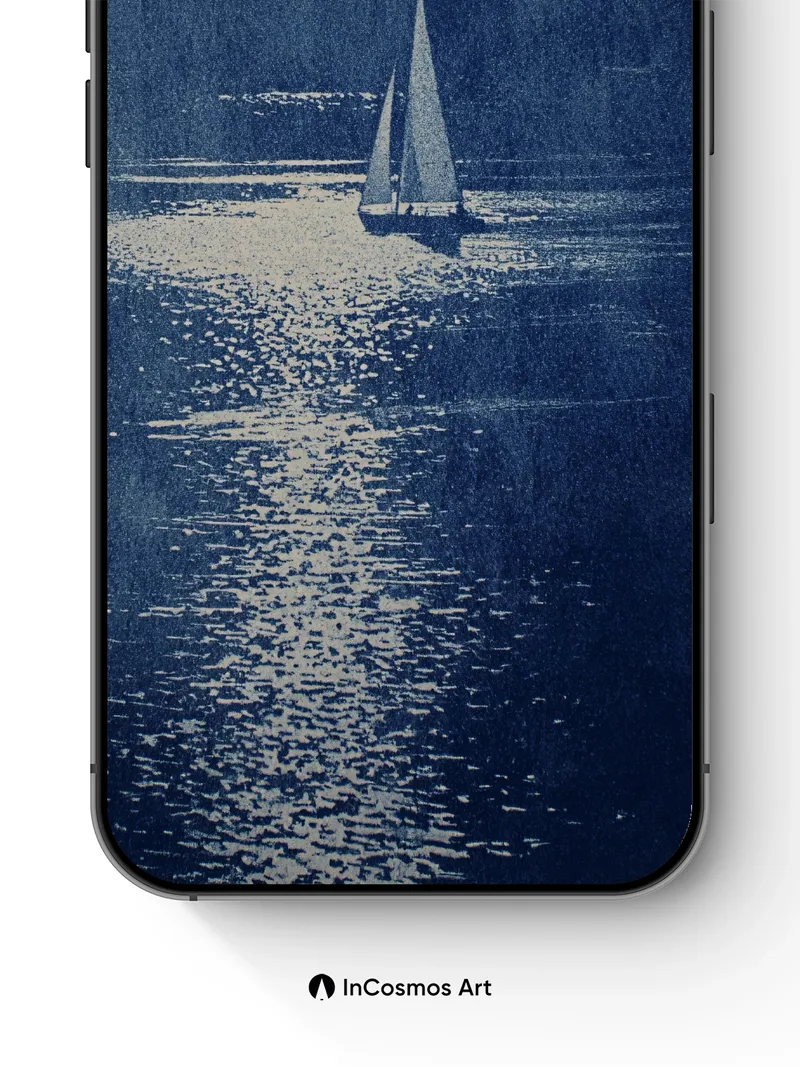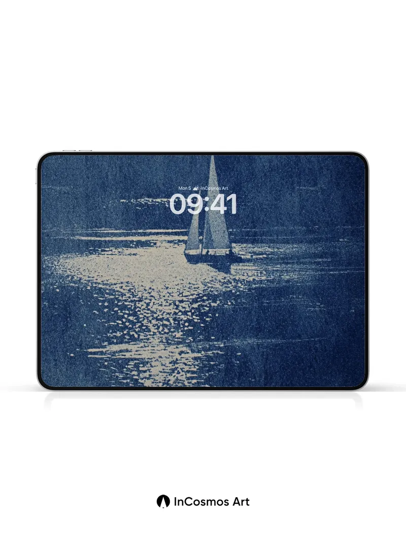 Moonlit Sail Wallpaper with Cyanotype Texture