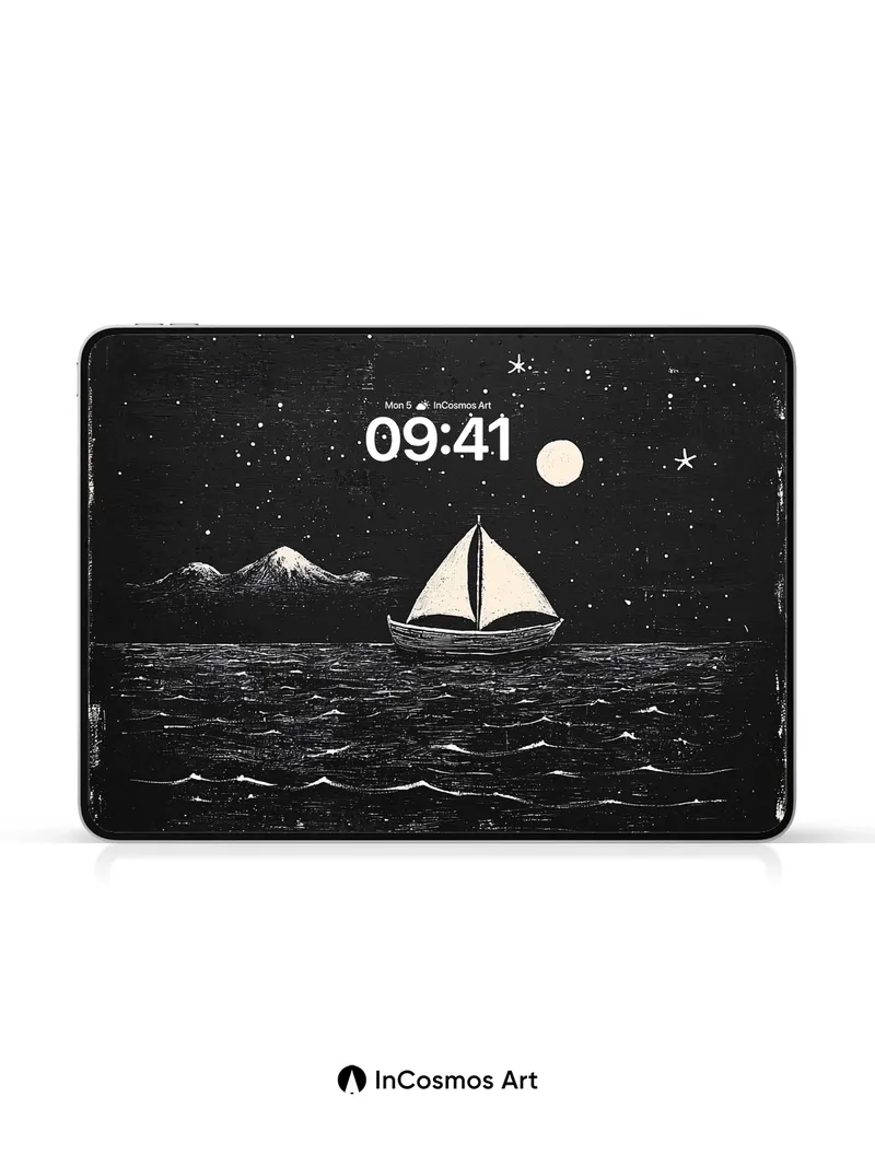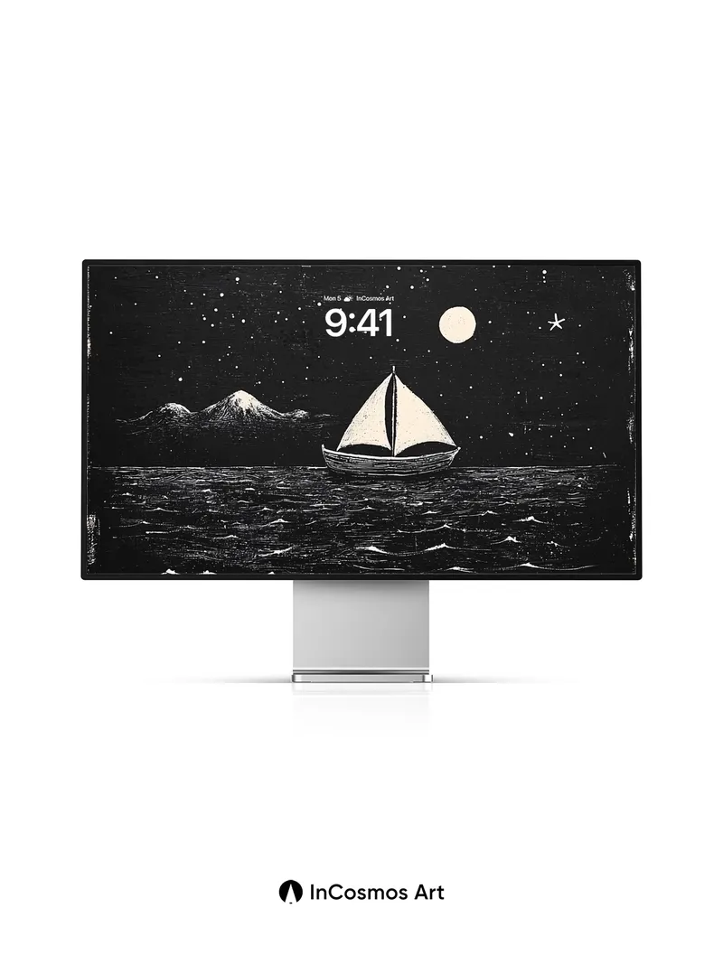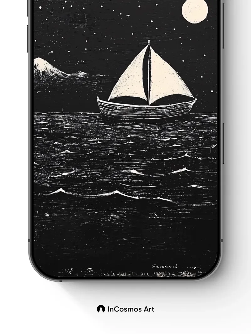 Moonlit Sail Wallpaper with Star-Strewn Silence