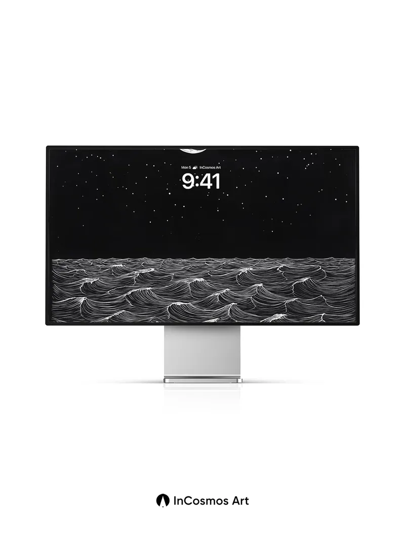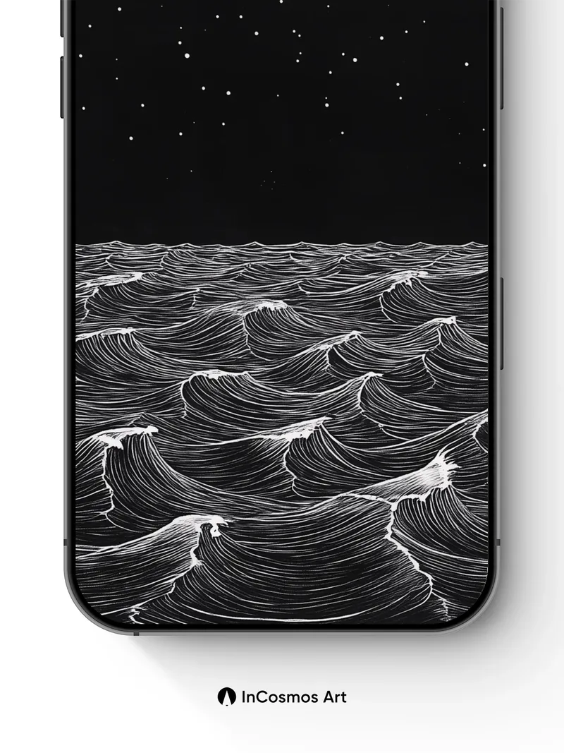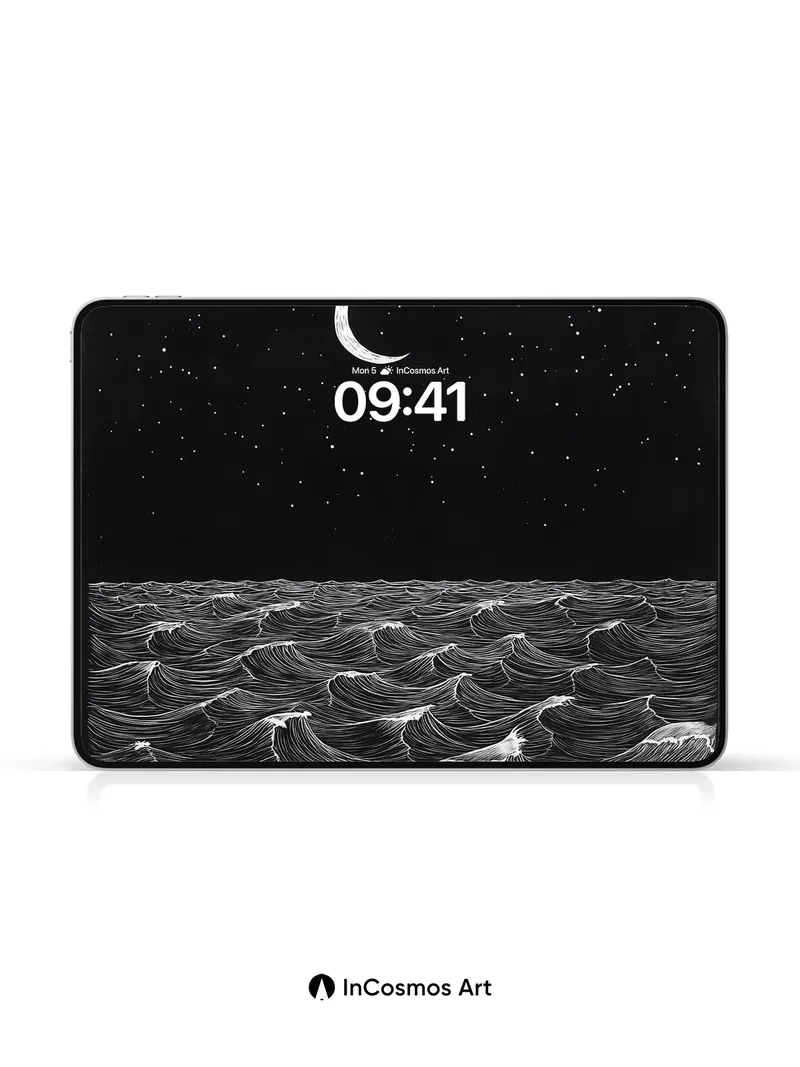 Moonlit Surge Wallpaper with Star-Stitched Sky