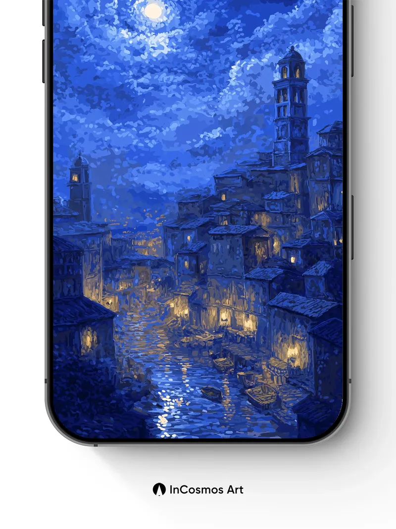 Moonlit Waterway Wallpaper with Gilded Reflections