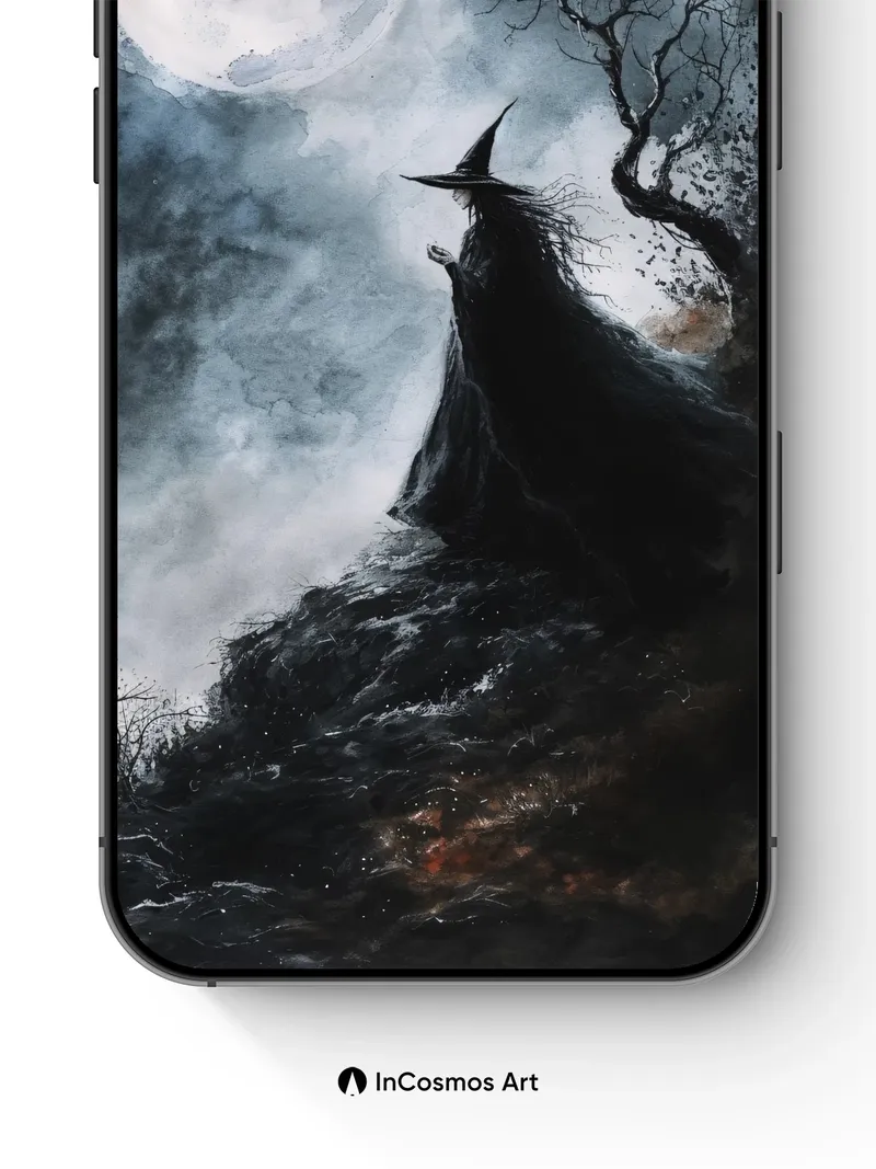 Moonlit Witch Wallpaper with Haunting Silhouette