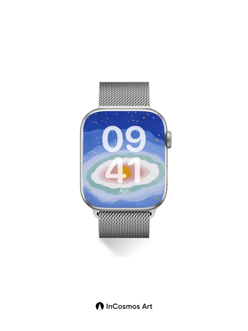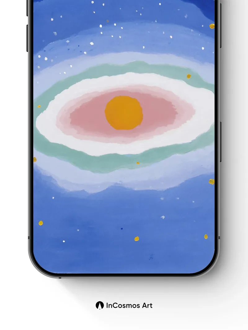 Soft rings of color ripple outward from a warm amber core, like light moving through water. Did you know the human eye can distinguish over 10 million shades of color? Here, they blur into one another like breath on glass. Share this with your best friend. Send this to your love and swap a matching set. What color does your silence feel like?