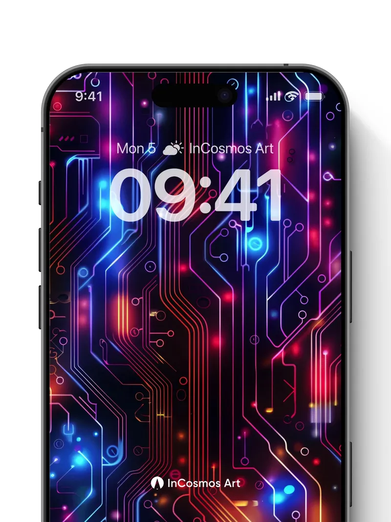 Neon Circuitry Wallpaper with Electric Pulse