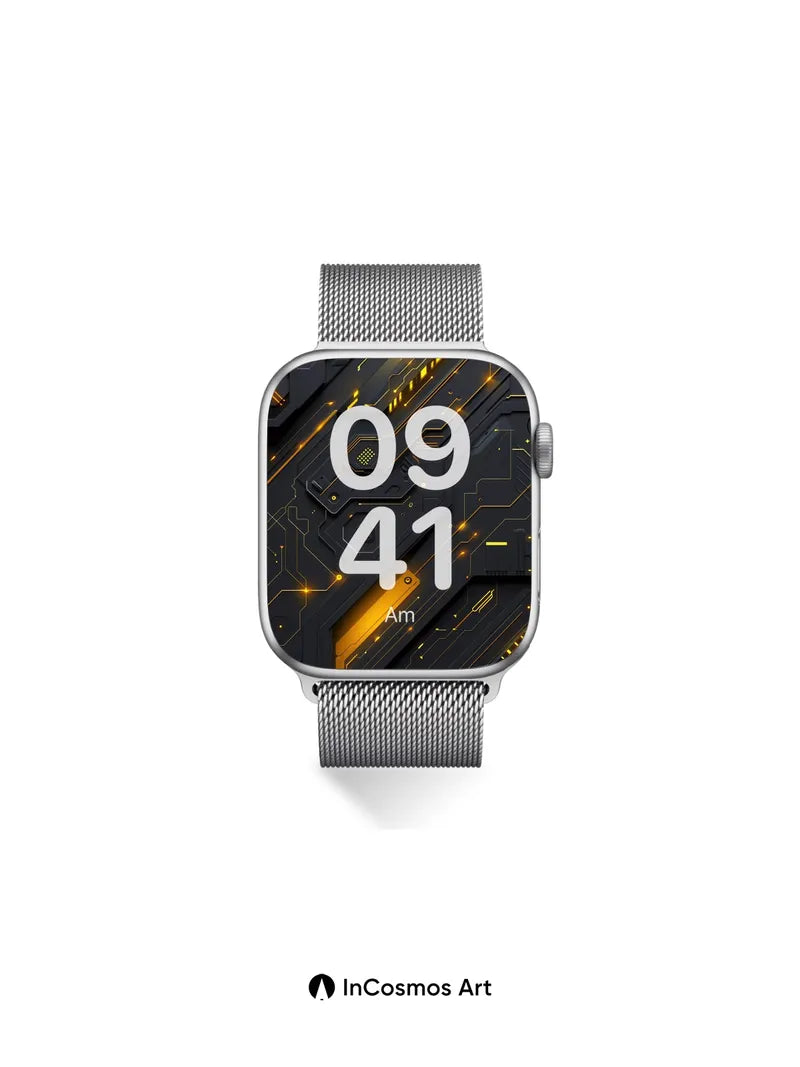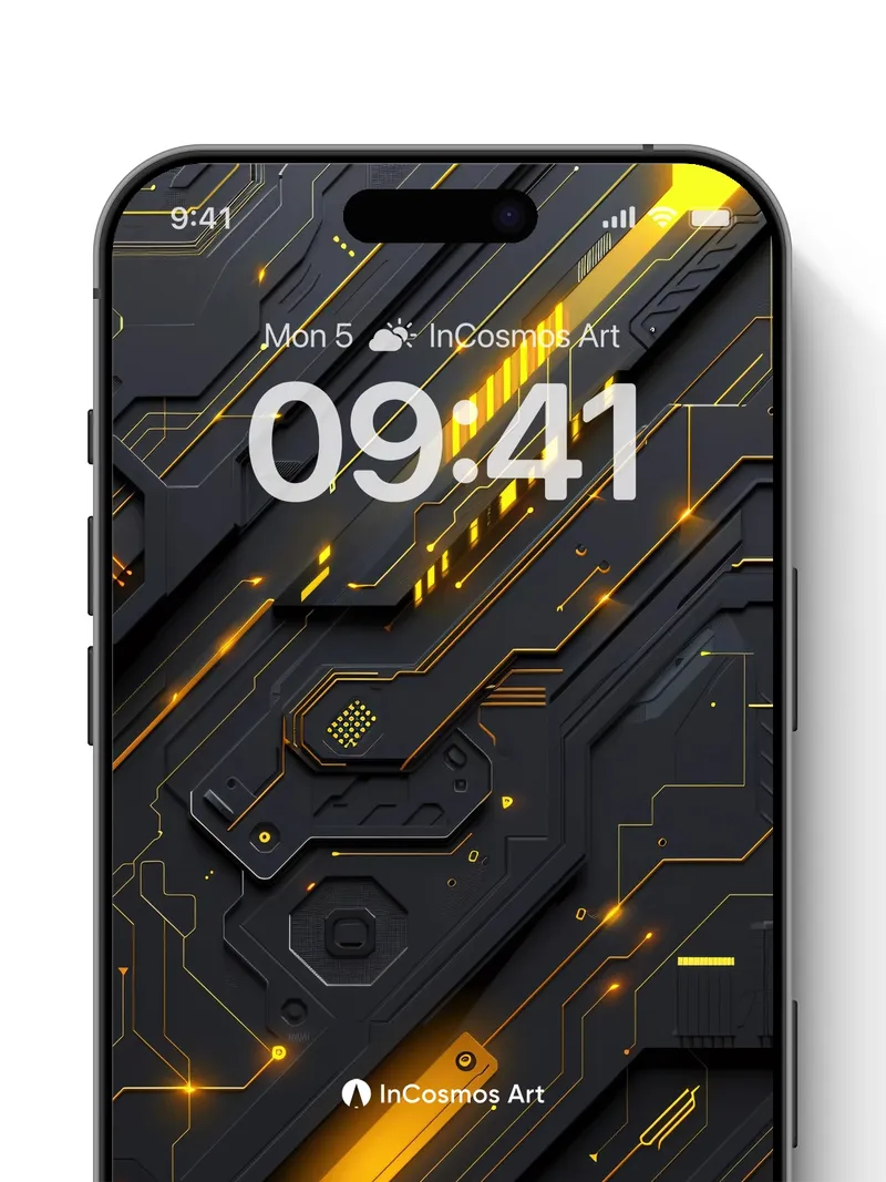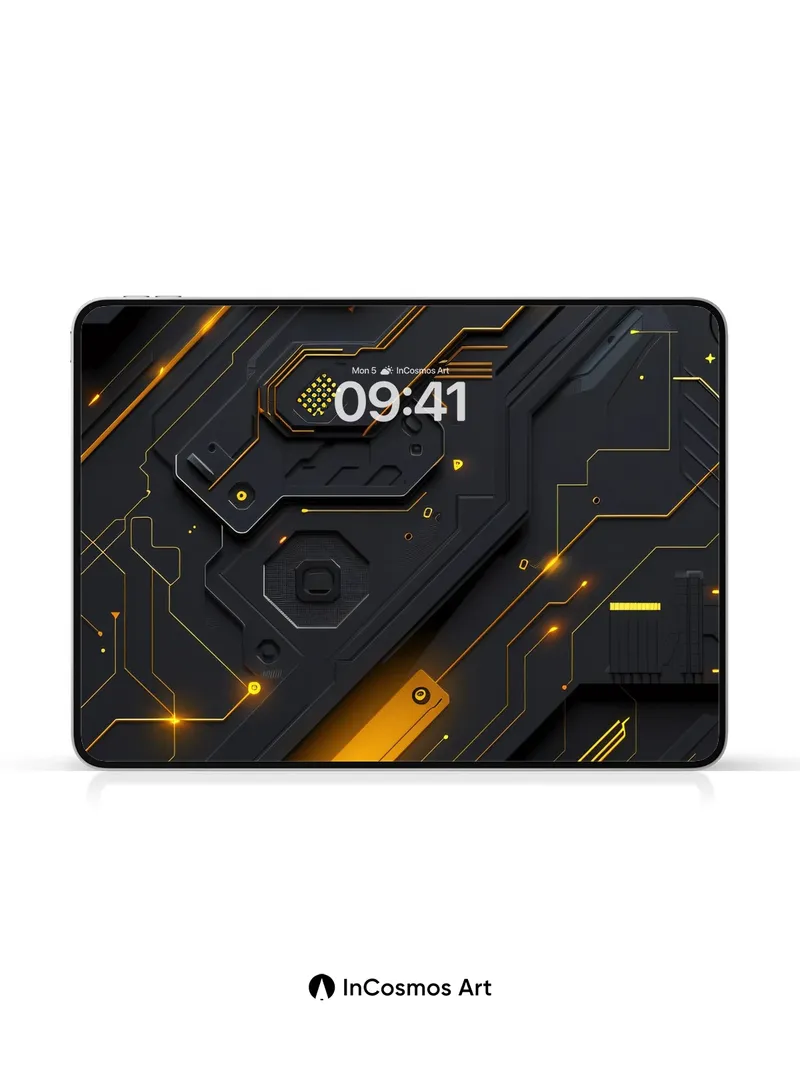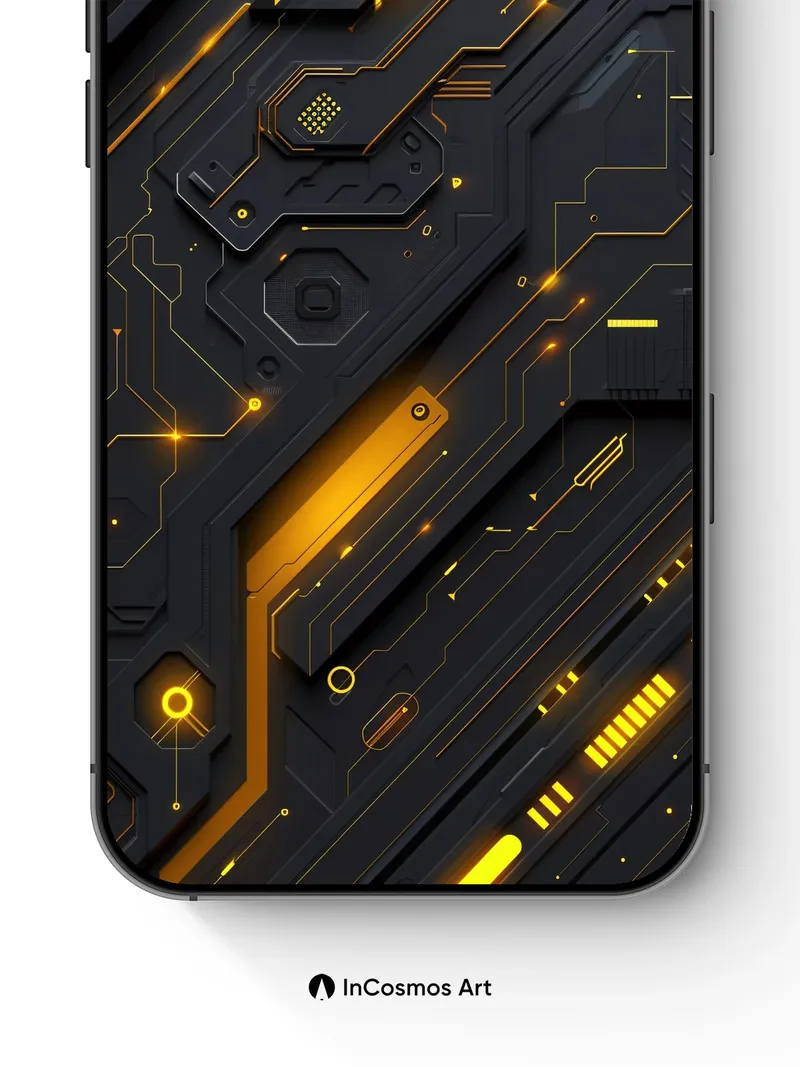 Neon Circuitry Wallpaper with Golden Pulse