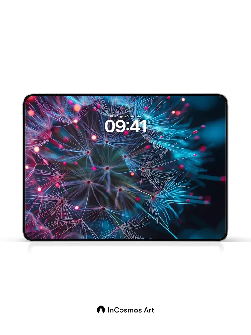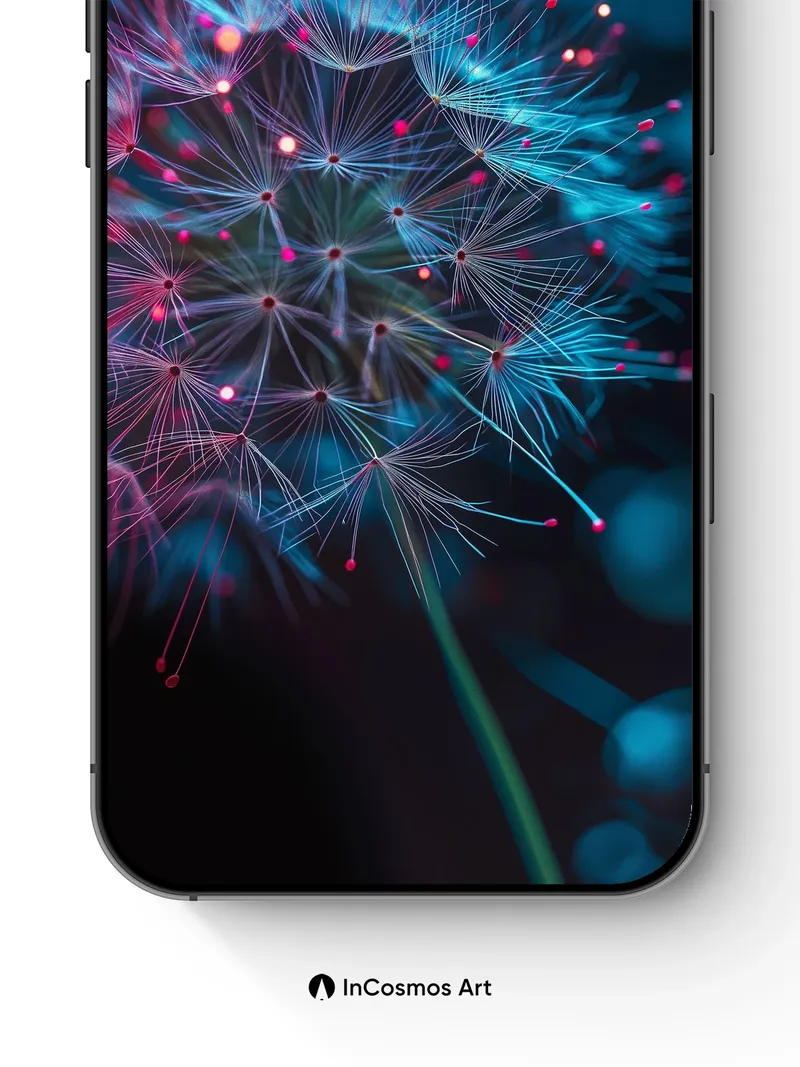 Neon Dandelion Wallpaper with Cosmic Seeds