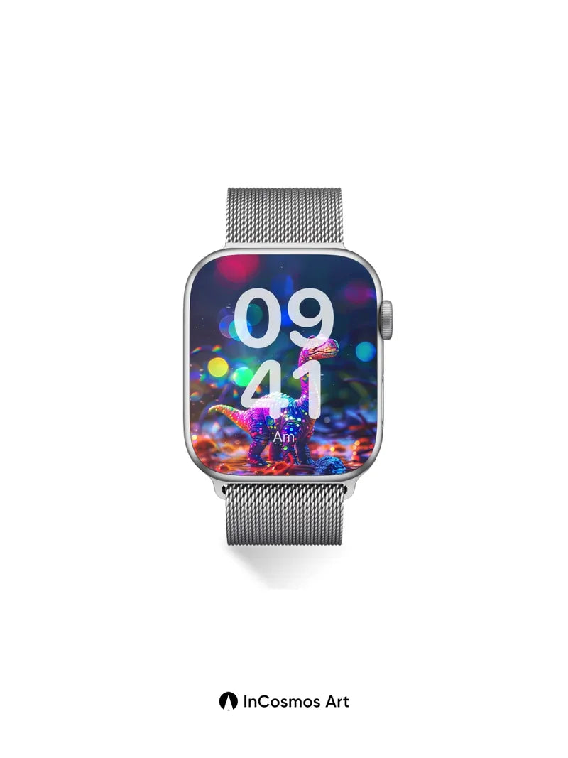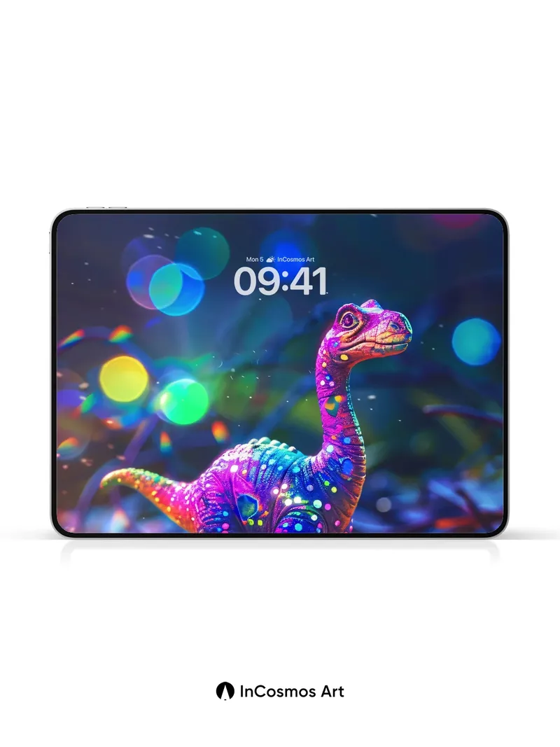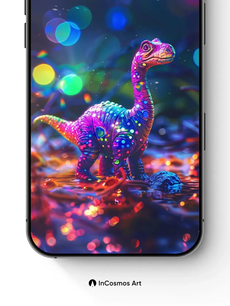 Neon Dino Wallpaper with Cosmic Sparkles
