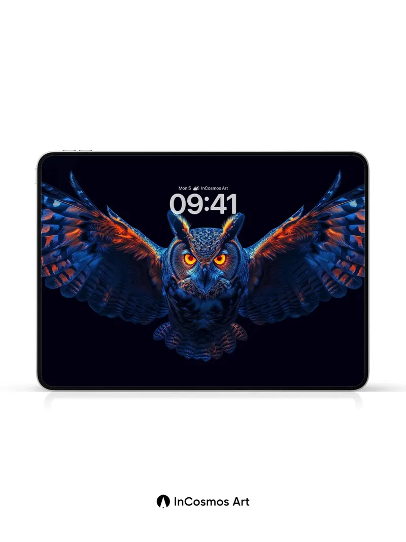 Neon Eclipse Owl Wallpaper with Electric Feathers