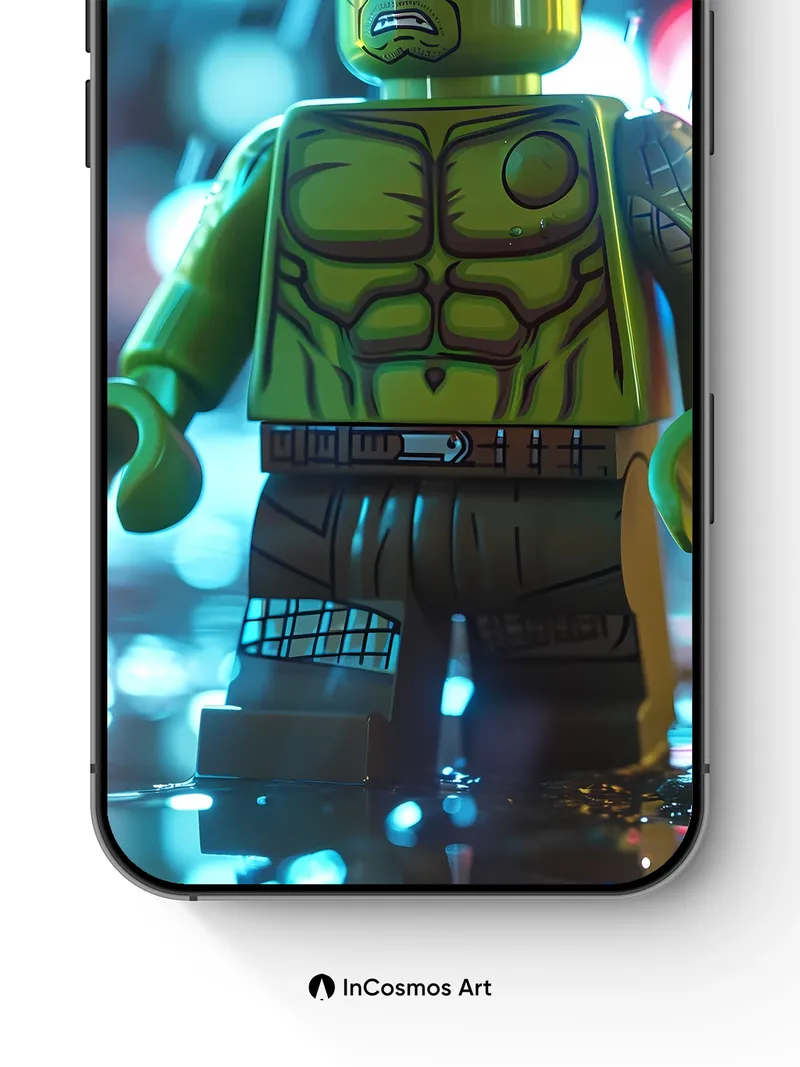 Debug og_description: Did you know LEGO minifigures are made from a proprietary plastic called ABS, which gives them their signature durability and shine? Here, the Hulk’s sculpted green form stands defiant under electric city lights, rain crawling over his chest like liquid mercury, each droplet catching neon pulses in its core. The reflection beneath him isn’t just water—it’s a mirror of rage, hope, and the quiet chaos of urban myth.