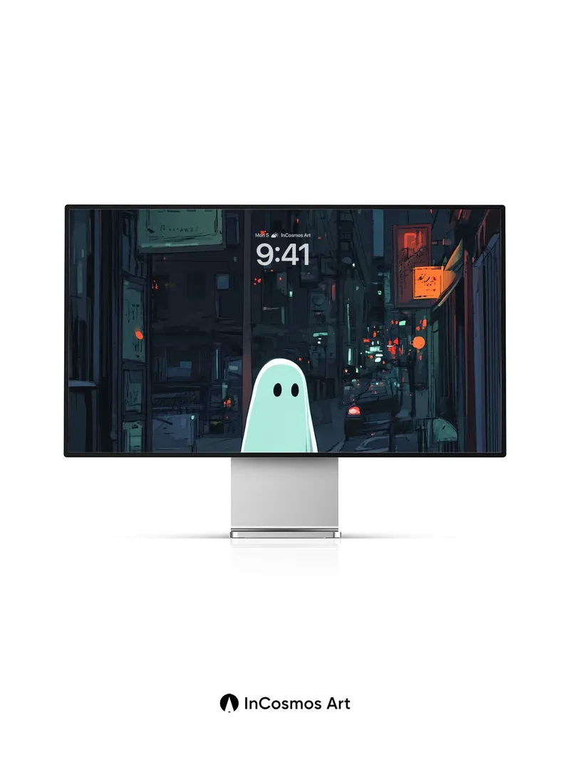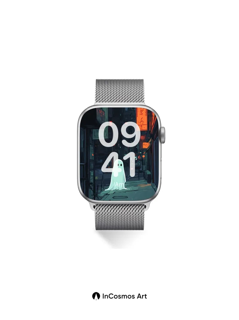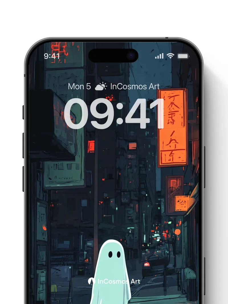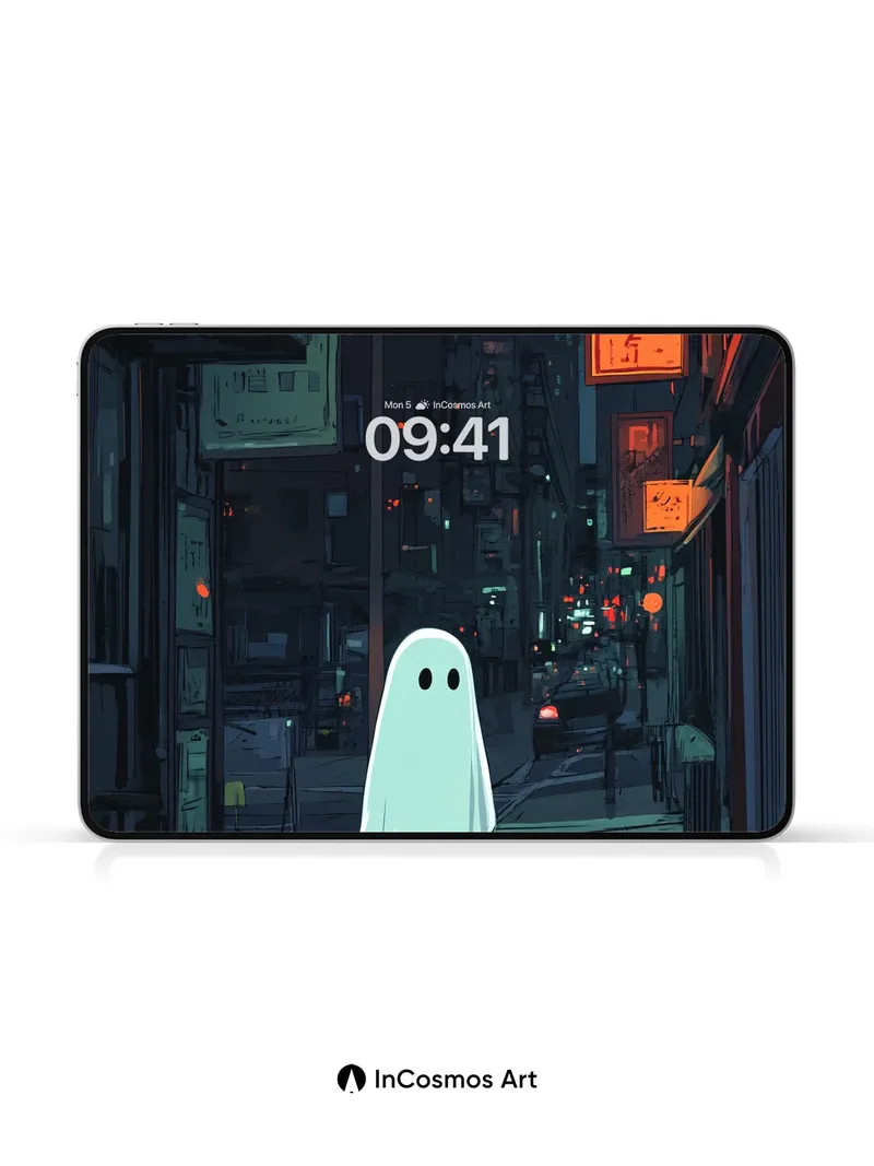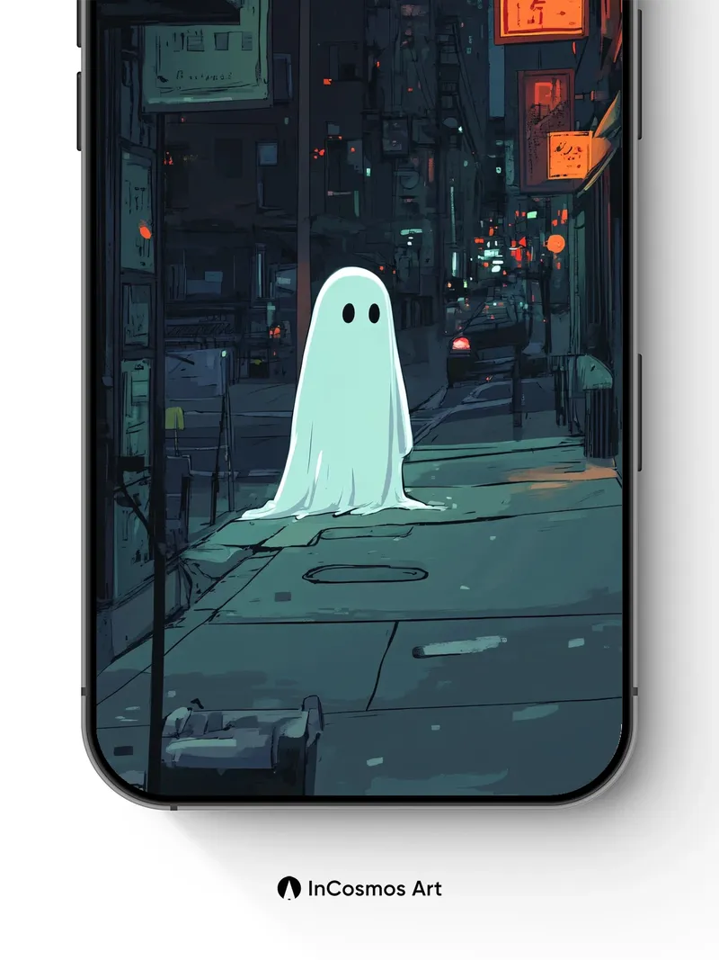 Debug product.metafields.custom.desc: Did you know that in Tokyo’s alleyways, neon signs flicker like sleeping eyes? A spectral figure glides down a rain-slicked street where light crawls over wet concrete and Chinese characters glow in crimson haze. The ghost floats not as a threat, but as a quiet wanderer—its translucent form breathing against the city’s hum, caught between memory and midnight.