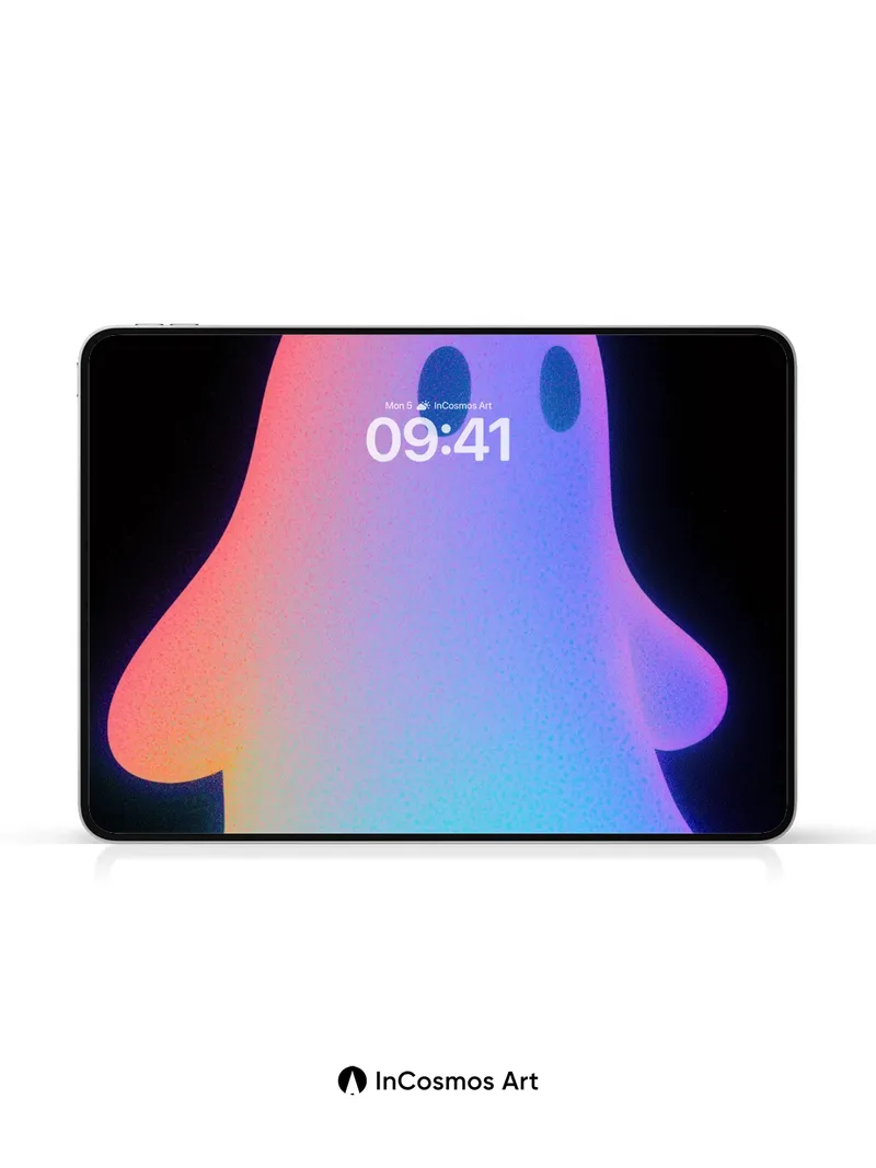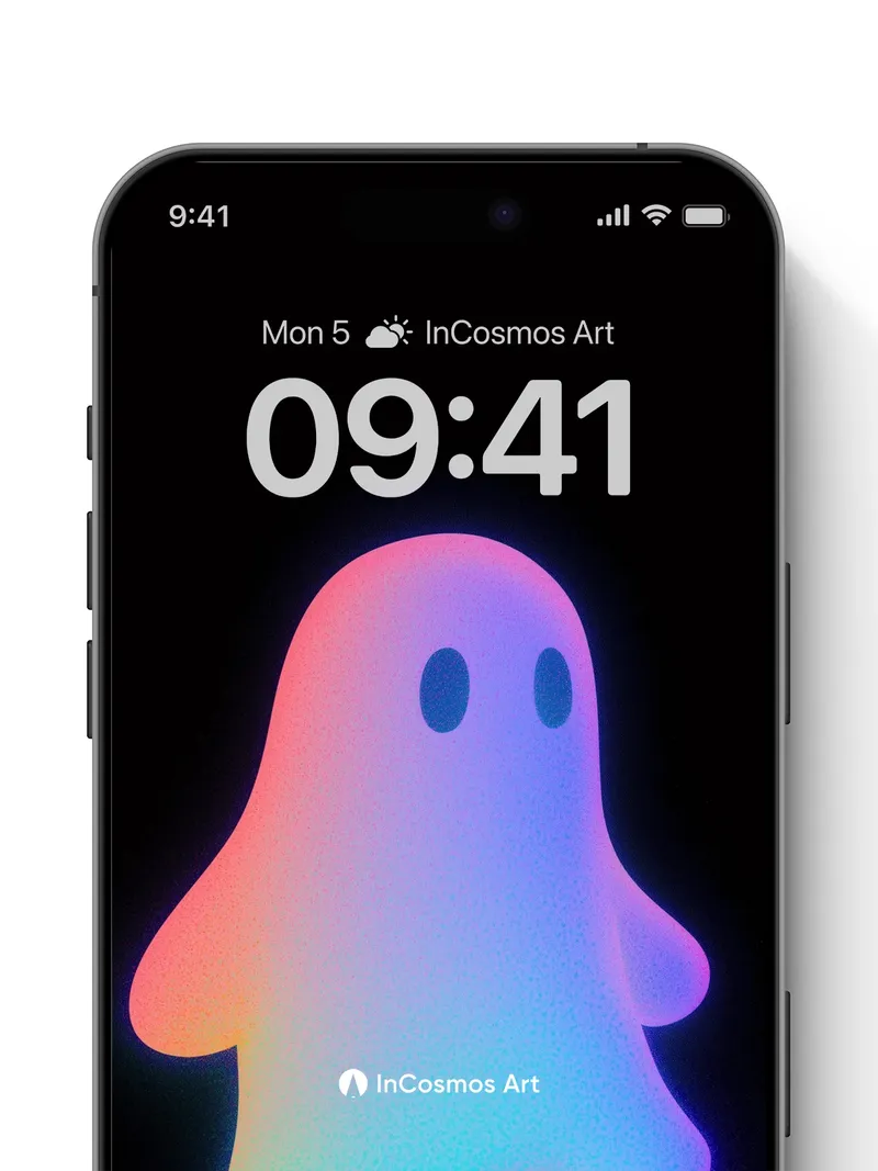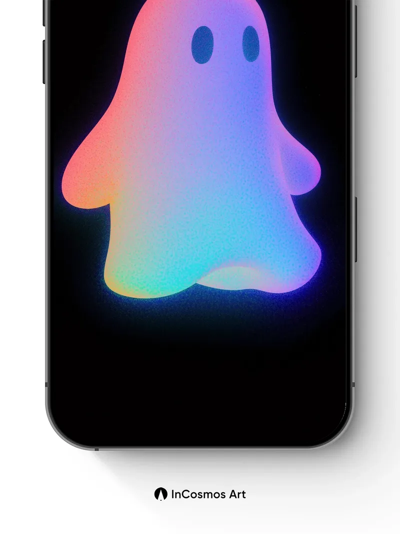 Neon Ghost Wallpaper with Rainbow Aura