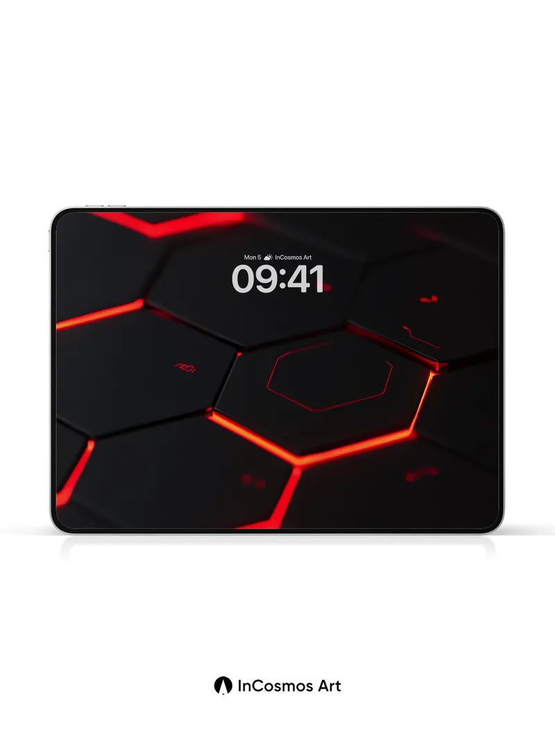Debug page_description: Did you know hexagonal patterns appear in nature from honeycombs to molecular structures? Here, crimson light crawls along the edges of a dark, matte surface, each tile breathing with a faint pulse like a circuit alive beneath your gaze. The glow traces invisible pathways, as if data flows through a silent, futuristic hive—your walls now hum with quiet intelligence. Share this with your best friend. Send this to your love and swap a matching set. What if your home could whisper secrets in code?
