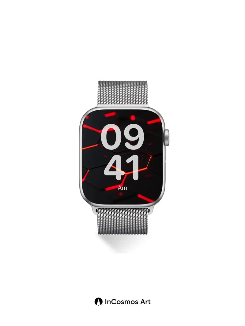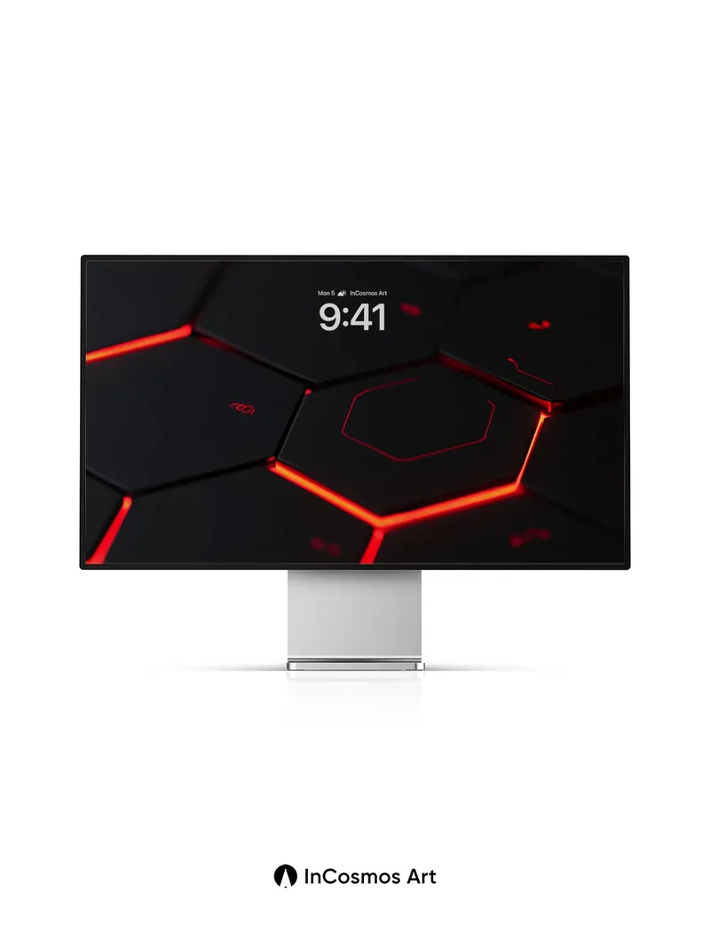 Debug product.metafields.custom.desc: Did you know hexagonal patterns appear in nature from honeycombs to molecular structures? Here, crimson light crawls along the edges of a dark, matte surface, each tile breathing with a faint pulse like a circuit alive beneath your gaze. The glow traces invisible pathways, as if data flows through a silent, futuristic hive—your walls now hum with quiet intelligence.