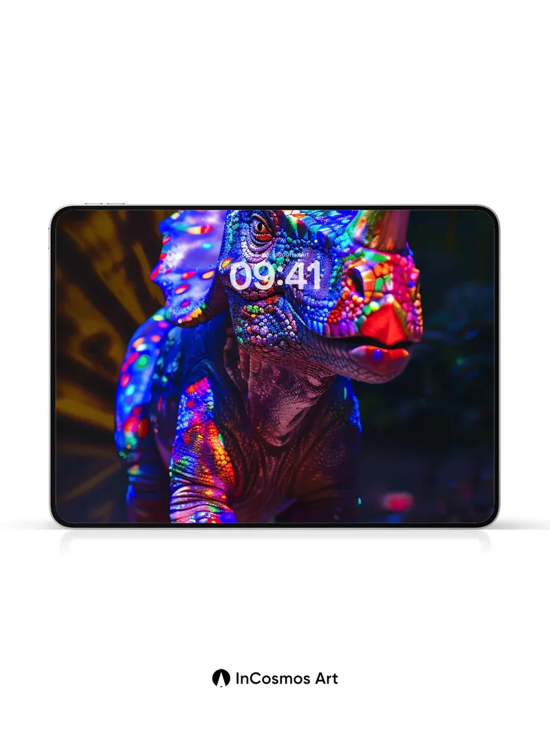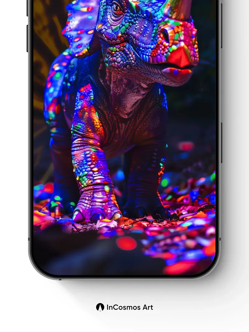 Neon Mirage Triceratops Wallpaper with Bioluminescent Skin