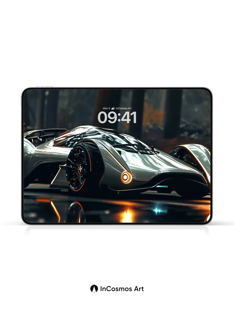 Debug product.metafields.custom.desc: Did you know that wet asphalt can mirror the sky like a liquid lens? Here, a sleek silver hypercar hovers above a rain-slicked forest floor where firelight dances in fractured gold. The car’s chrome skin breathes light, its glowing eyes piercing through misty pines as if time itself has paused to watch it glide. You feel the cool dampness of the air, the hum of silent engines, and the quiet awe of something too perfect to be real.
