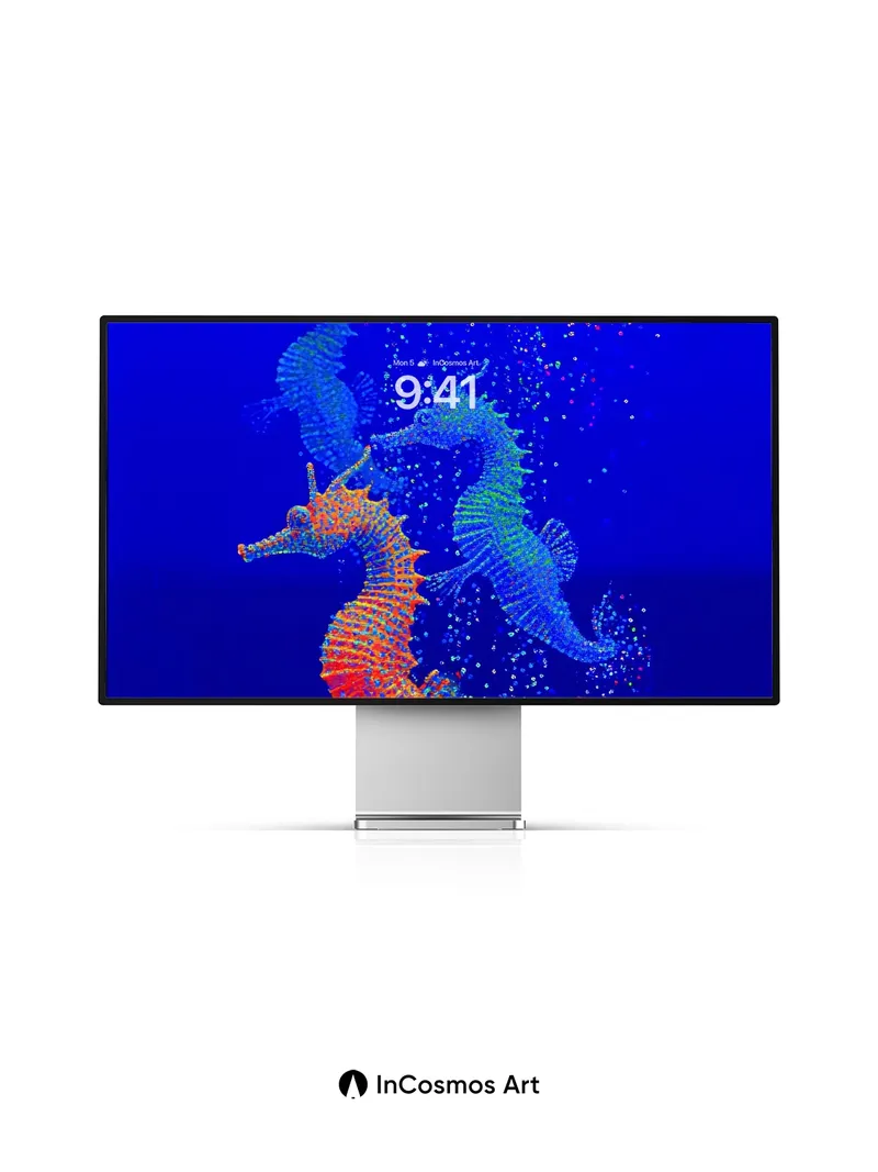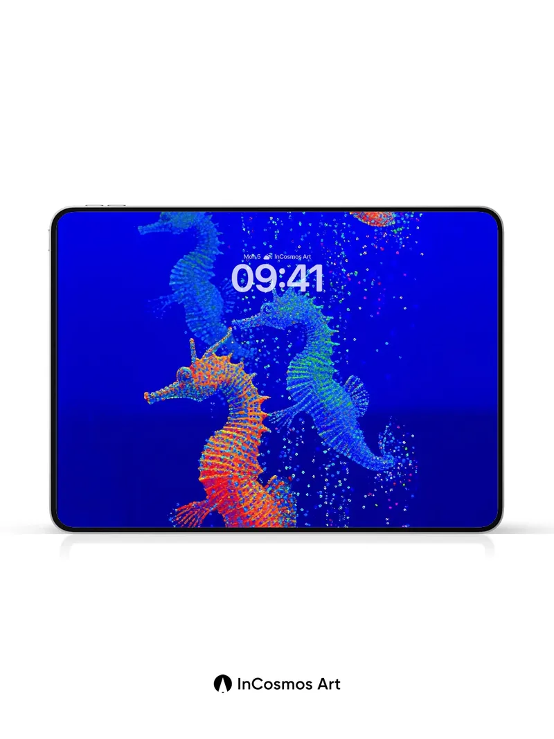 Neon Oceanic Wallpaper with Dazzling Seahorse Trails