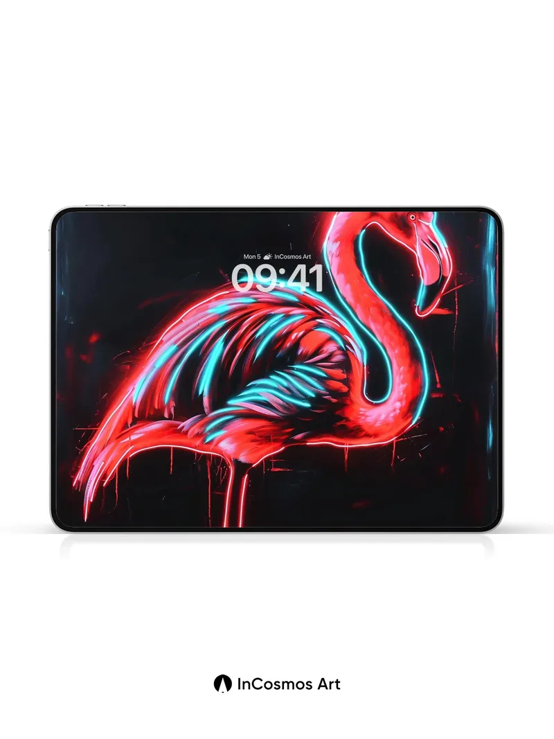 Neon Pulse Flamingo Wallpaper with Electric Feathers
