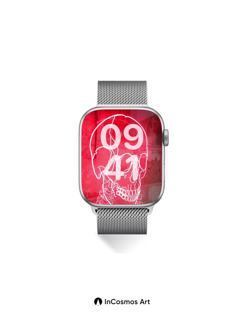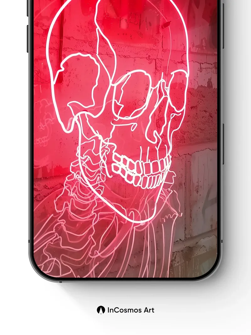 Neon Pulse Skull Wallpaper with Haunted Lines