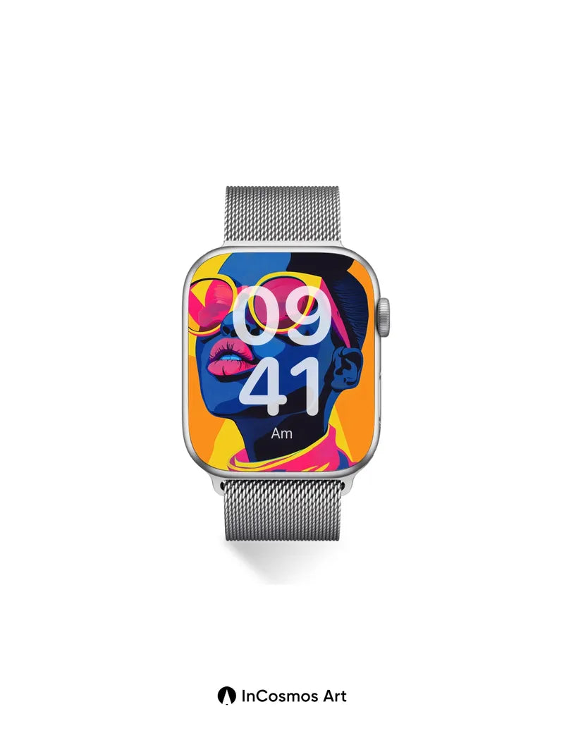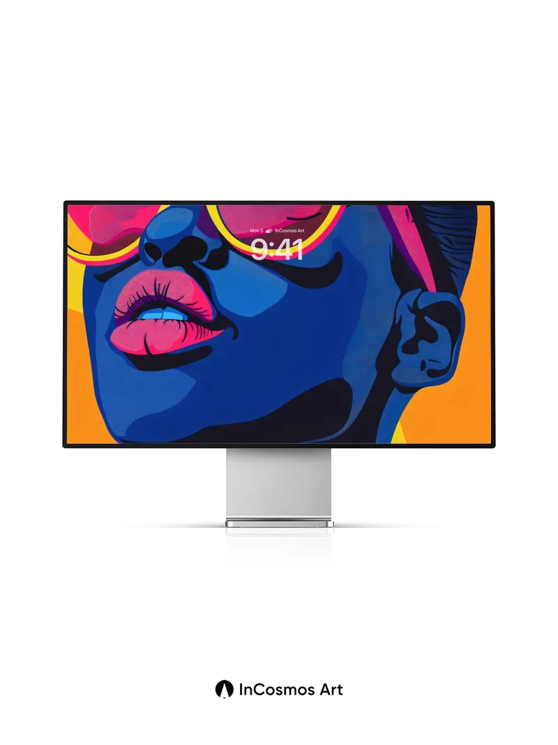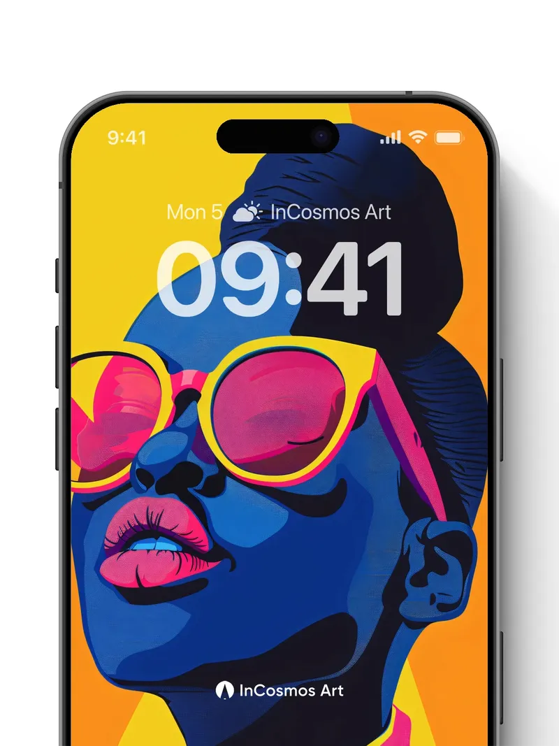 Debug product.metafields.custom.desc: Did you know that pop art emerged in the 1950s as a rebellion against elitist fine art, using mass culture imagery to challenge norms? Here, vibrant color fields and sharp contrasts breathe life into a stylized portrait, where light crawls over smooth surfaces like electric current. The bold yellow frame and magenta lenses reflect a world unbound by gravity—where identity is both mask and revelation.