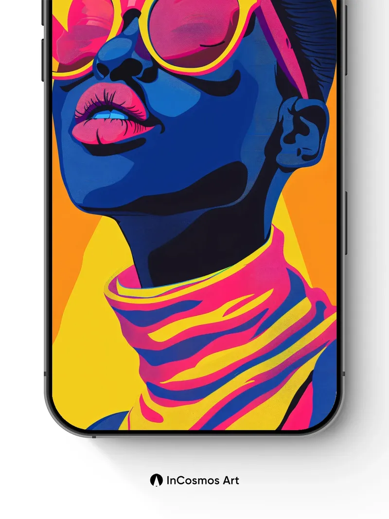 Did you know that pop art emerged in the 1950s as a rebellion against elitist fine art, using mass culture imagery to challenge norms? Here, vibrant color fields and sharp contrasts breathe life into a stylized portrait, where light crawls over smooth surfaces like electric current. The bold yellow frame and magenta lenses reflect a world unbound by gravity—where identity is both mask and revelation.