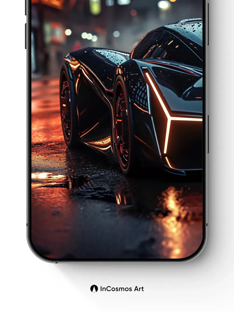 Neon Pulse Wallpaper with Rain-Slicked Reflections