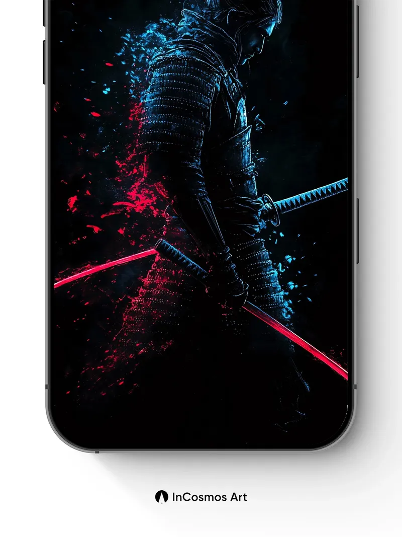 Neon Shadow Wallpaper with Samurai Aura