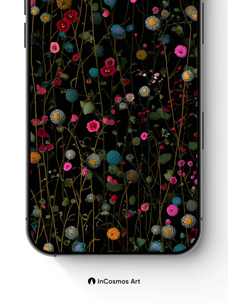 Nocturnal Bloom Wallpaper with Bioluminescent Vines