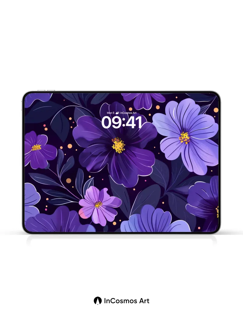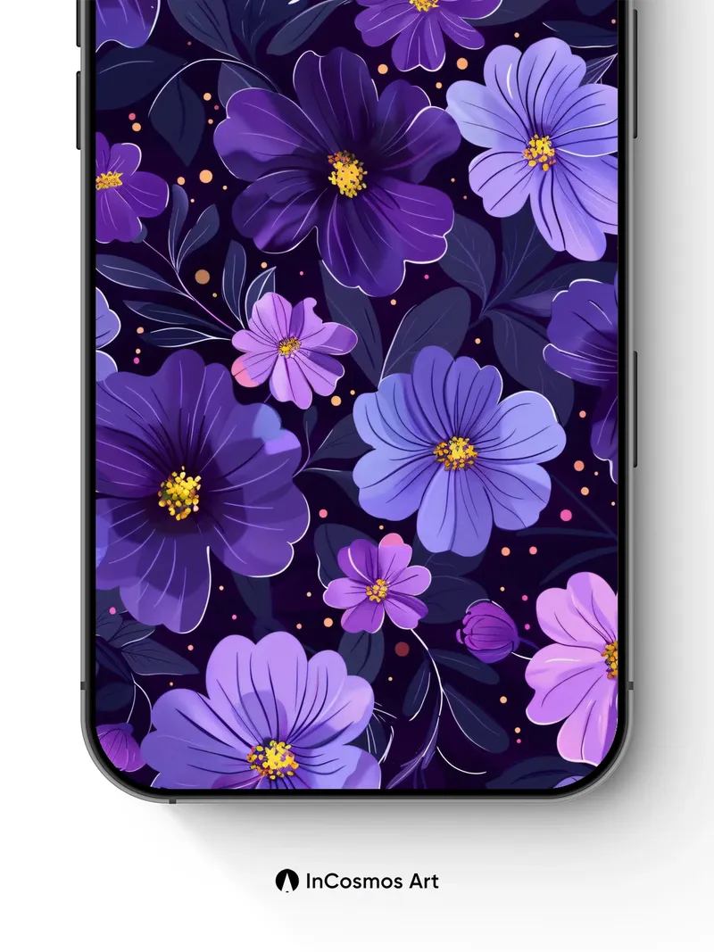 Nocturnal Bloom Wallpaper with Celestial Dots