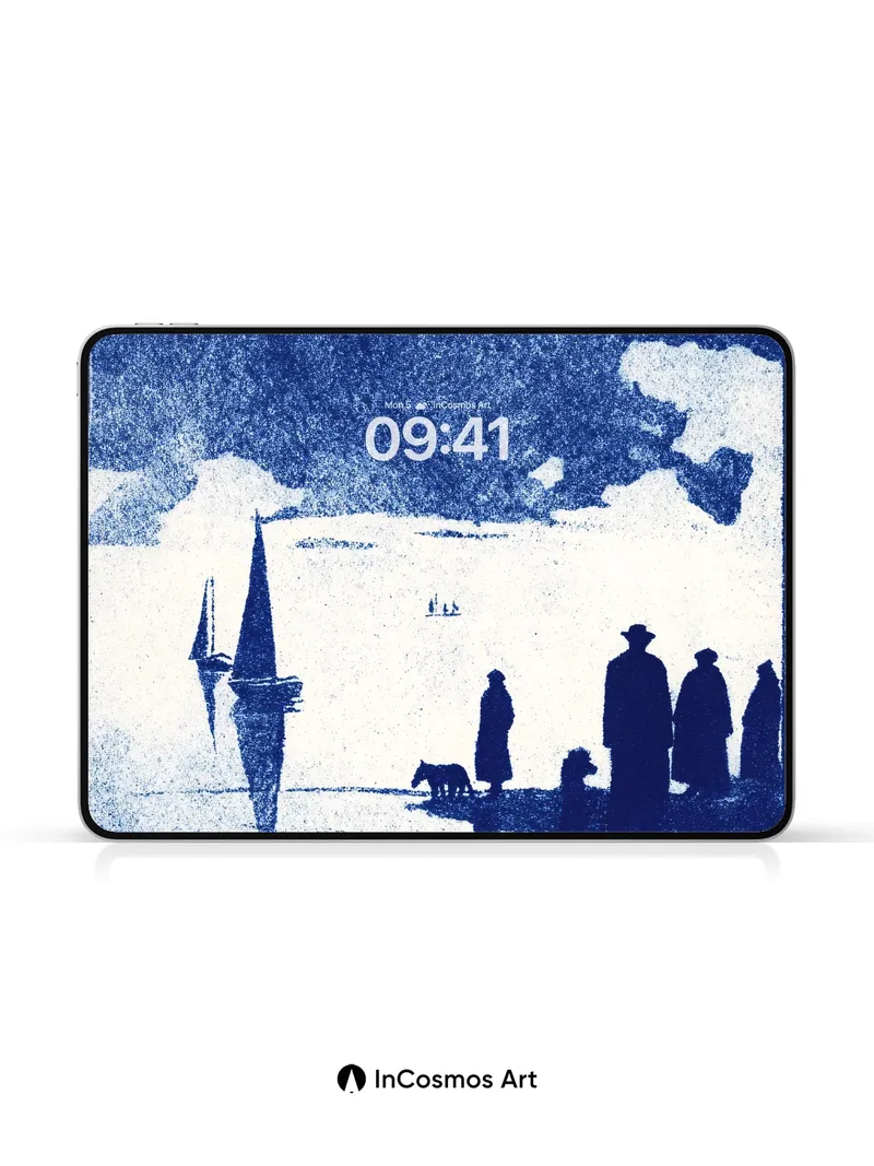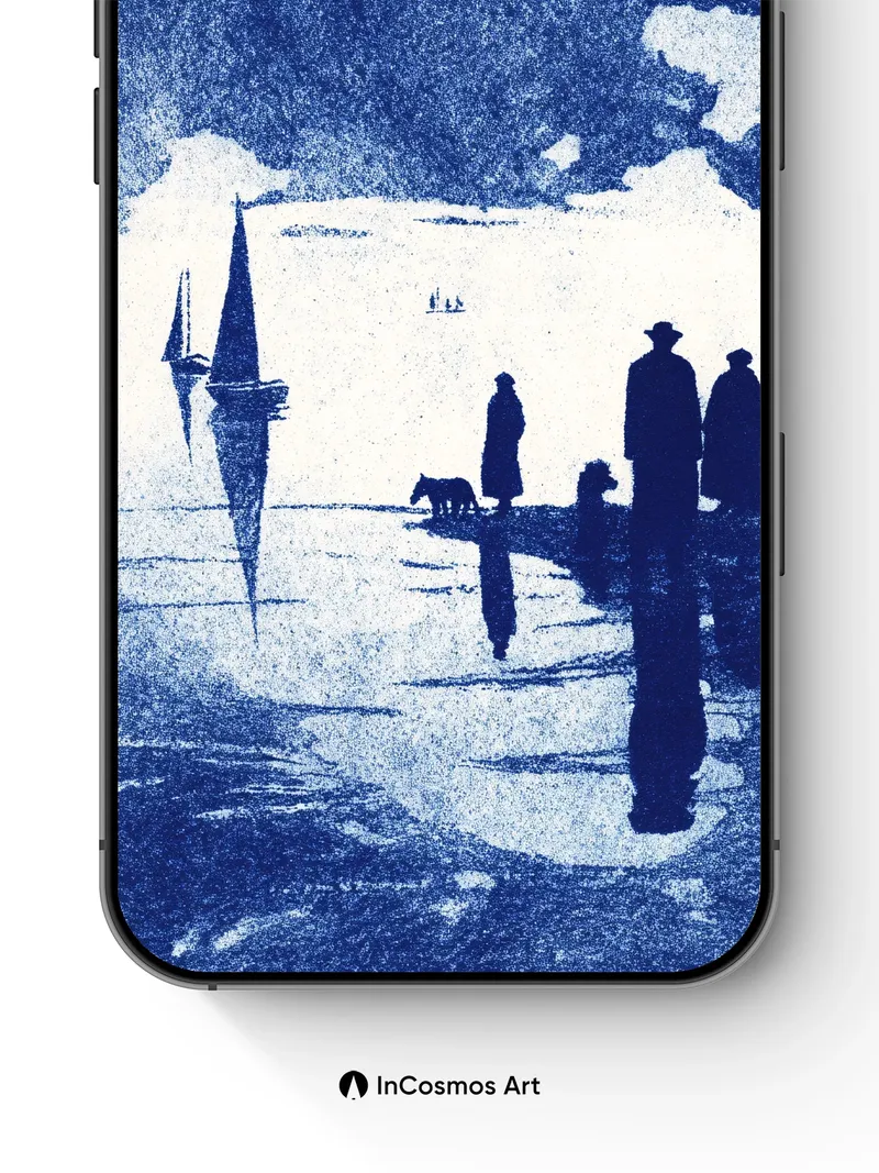 Nocturnal Blue Silence Wallpaper with Sailboat Echoes