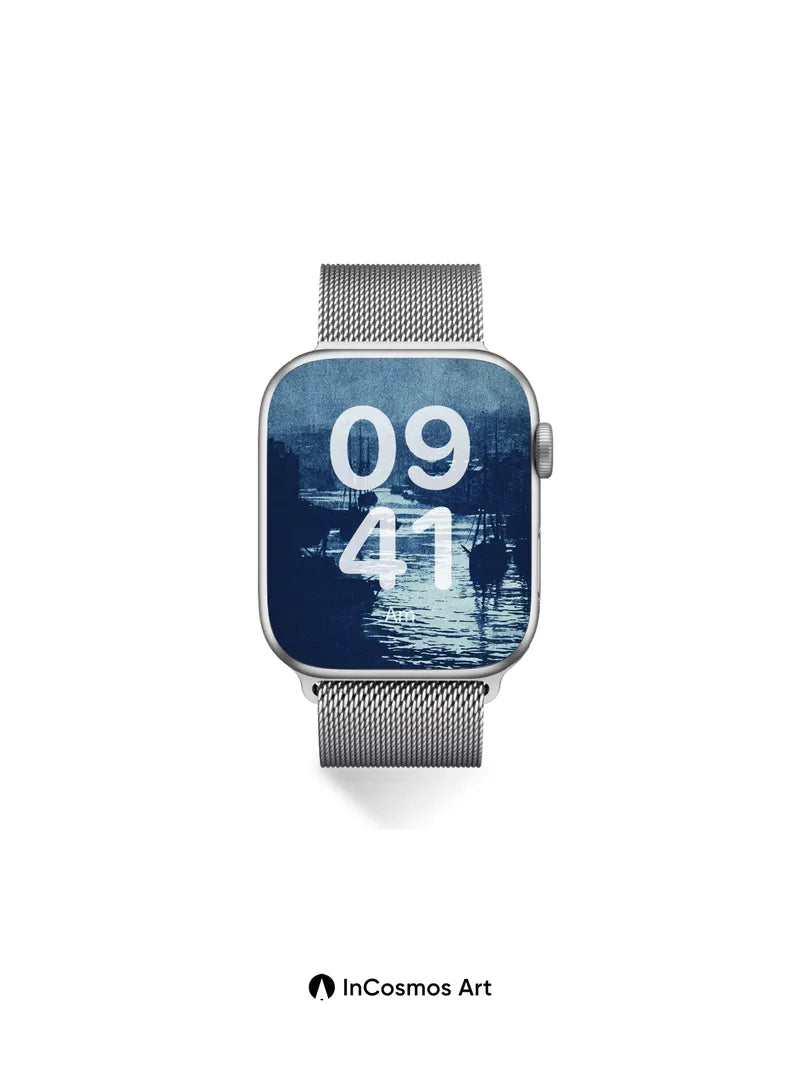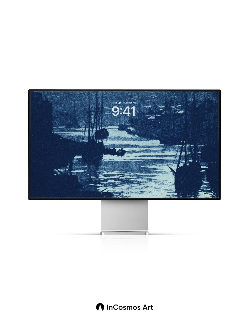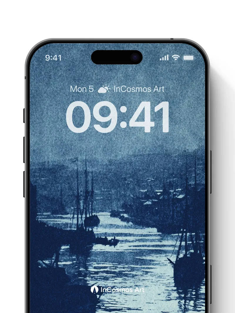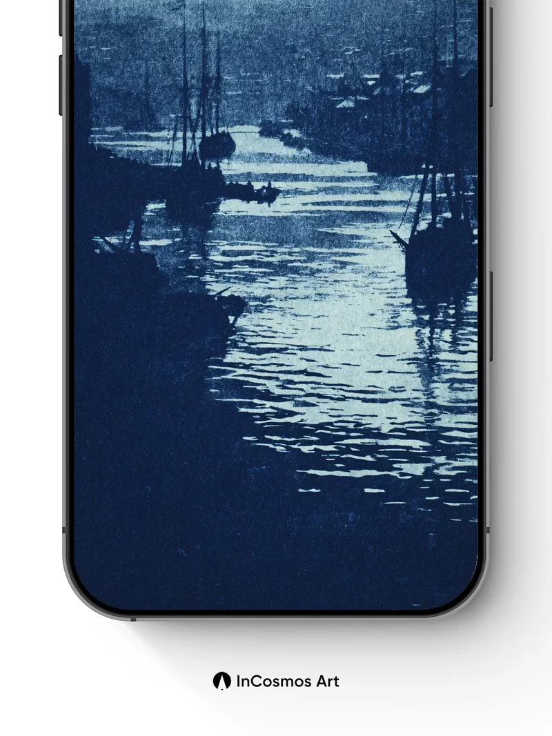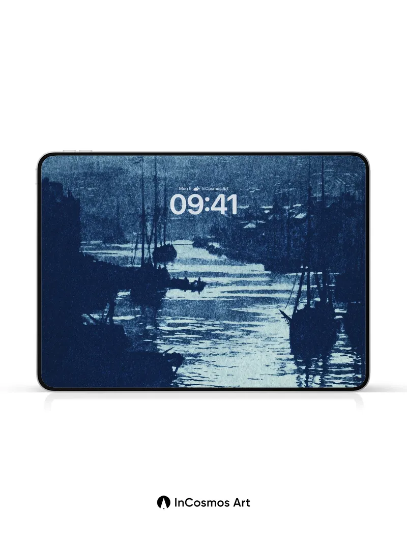 Nocturnal Harbor Wallpaper in Cyanotype Hues