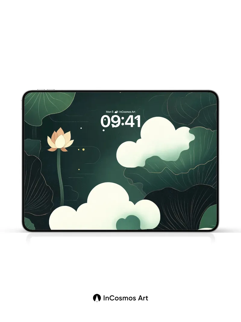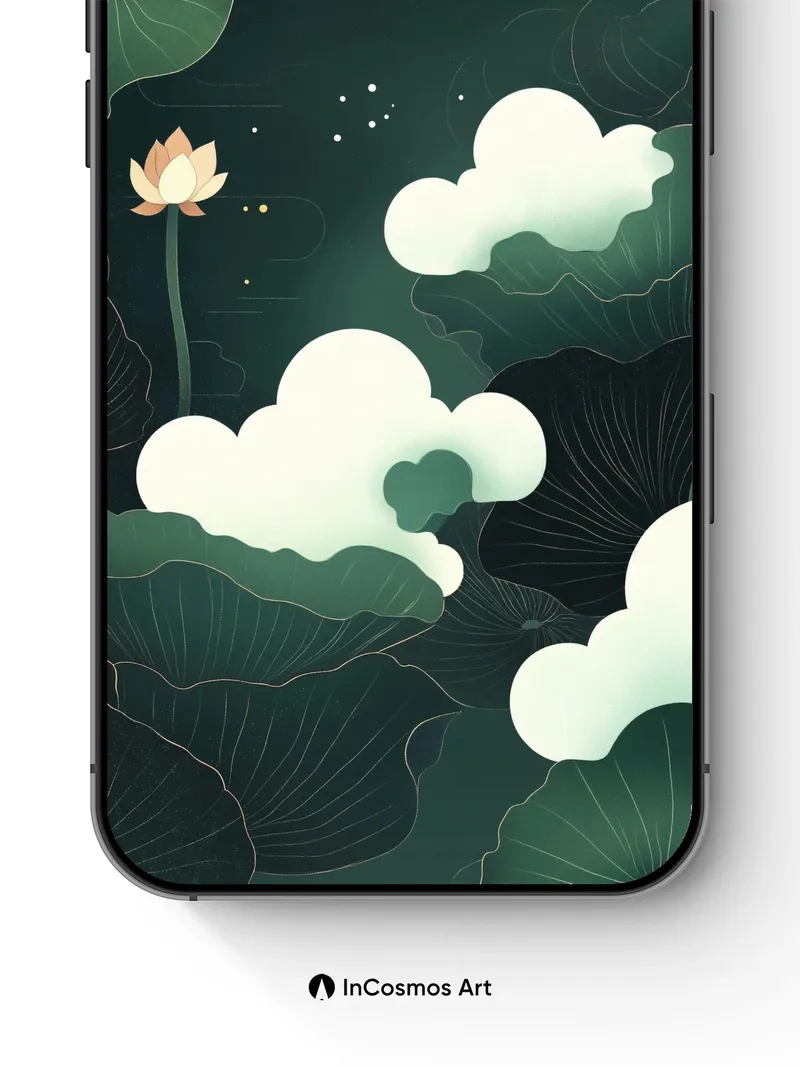 Nocturnal Lotus Wallpaper with Floating Clouds
