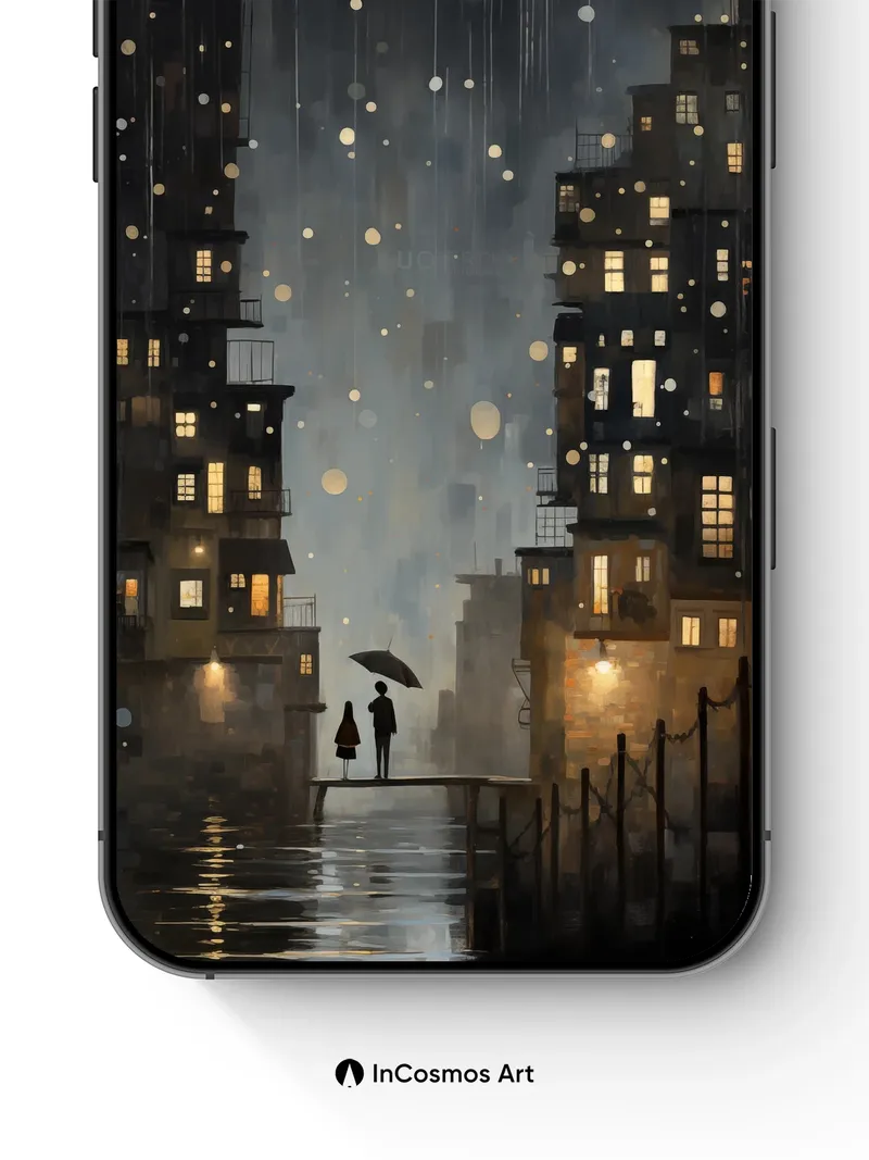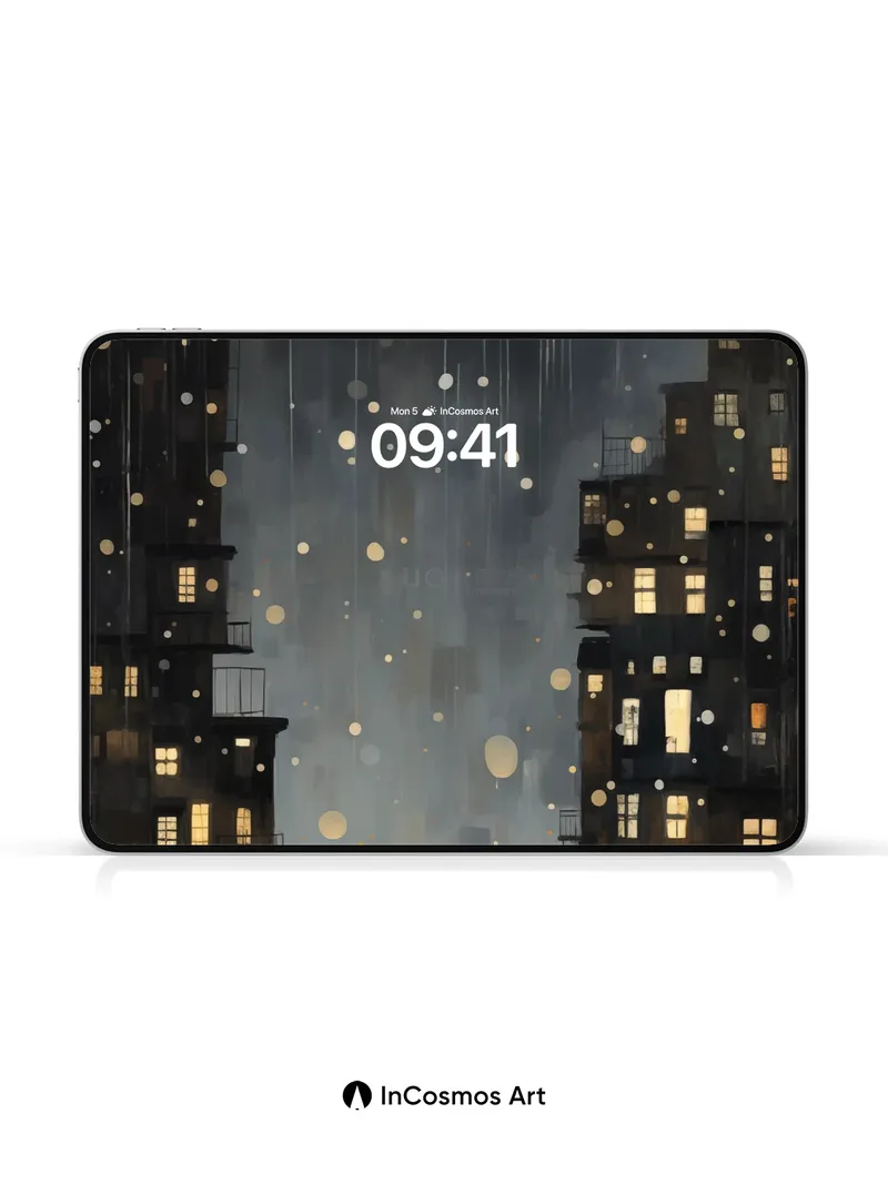 Nocturnal Rainfall Wallpaper with Floating Lights