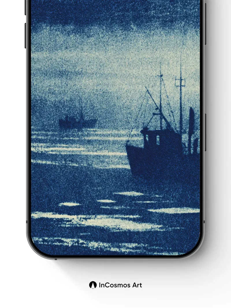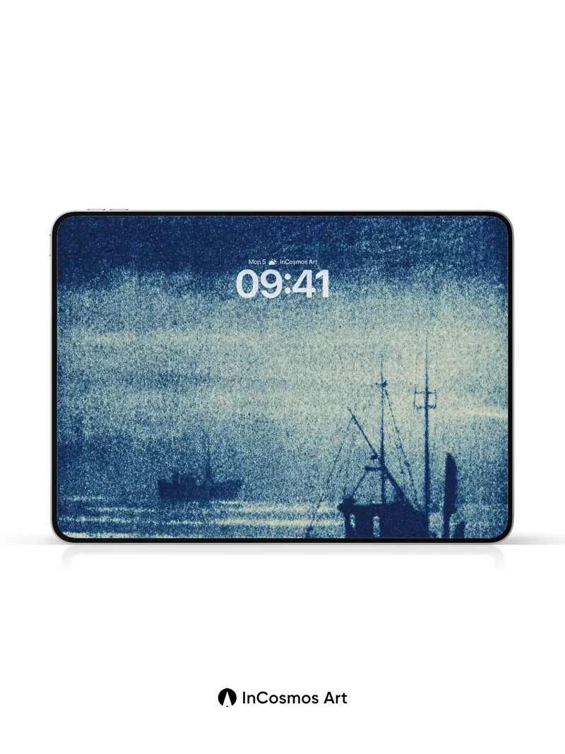 Nocturnal Sea Silence Wallpaper with Faded Hulls