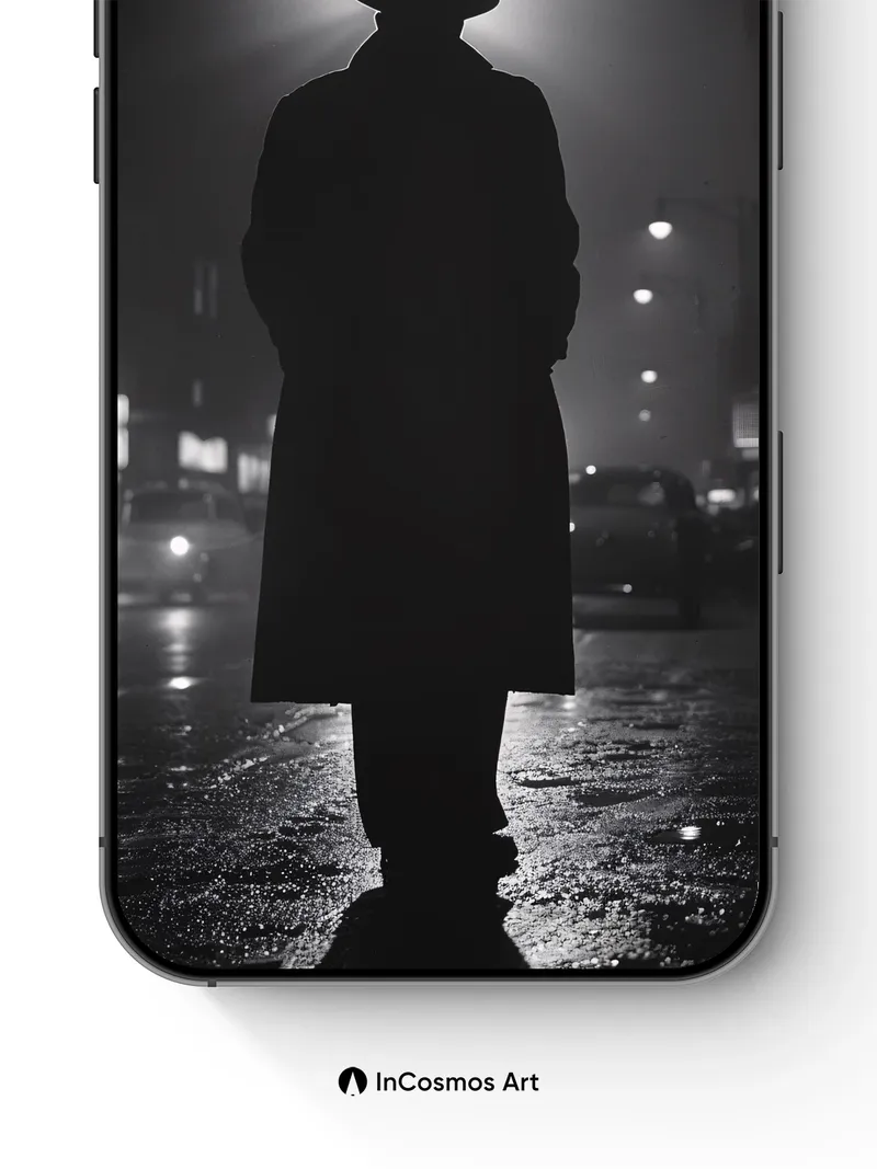 Debug product.metafields.custom.desc: Did you know that in the 1940s, Hollywood noir films used backlit silhouettes to evoke mystery? Here, a figure stands framed by fog and streetlight, smoke curling like a ghost from his hat. The wet pavement reflects fractured glimmers of light, turning the city into a mirror of secrets. You feel the chill of the night, the weight of unspoken stories—each breath a whisper in the dark.