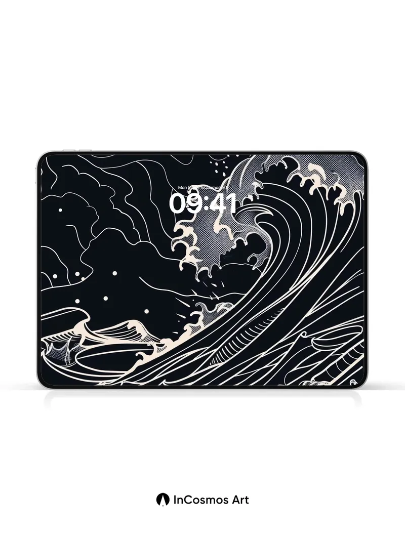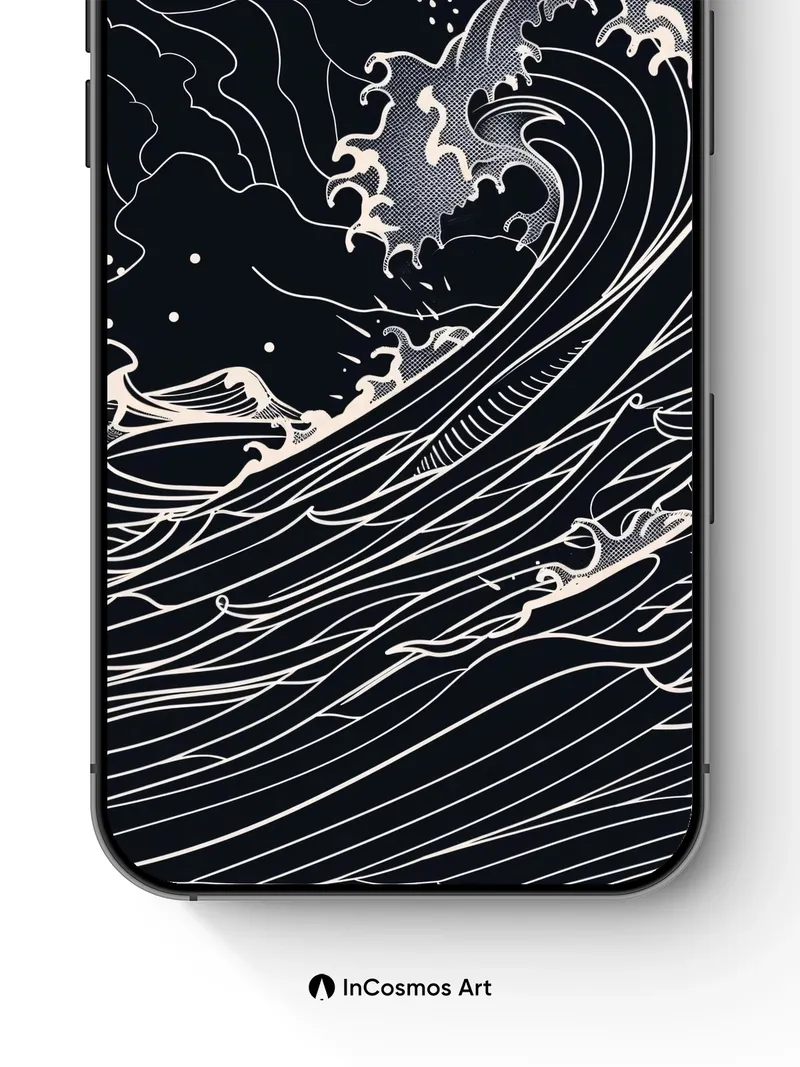 Nocturnal Wave Wallpaper with Hokusai Echoes