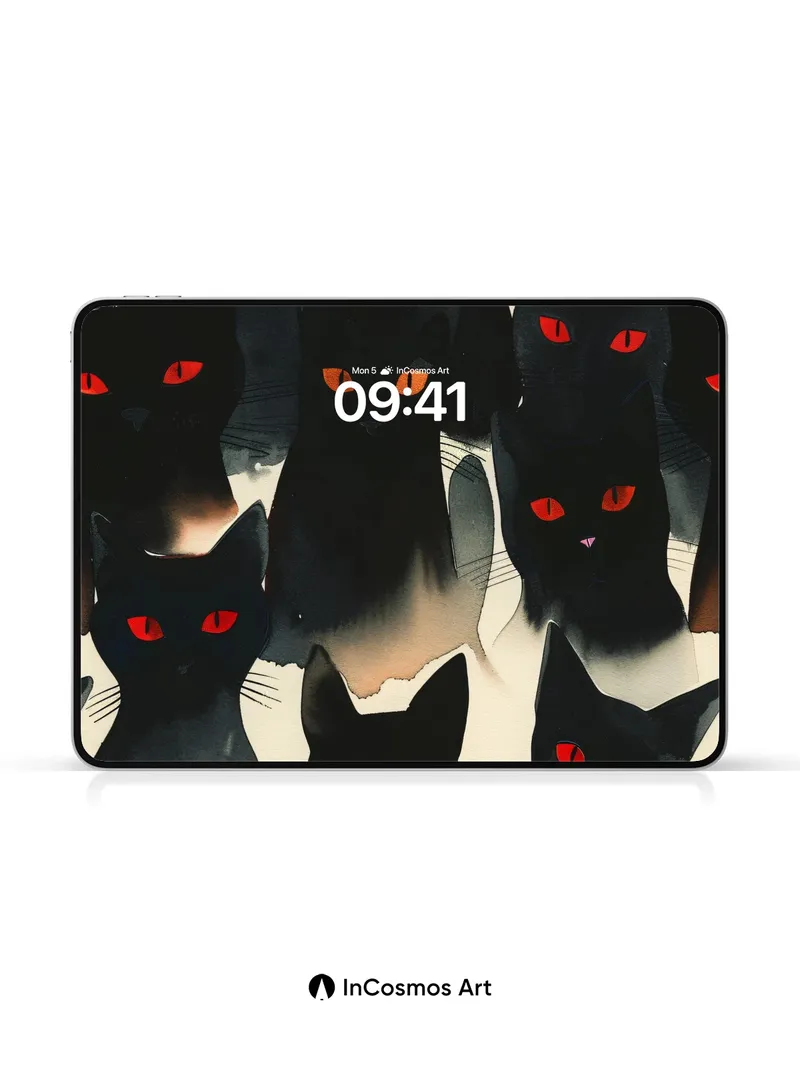 Obsidian Gaze Wallpaper with Crimson Eyes