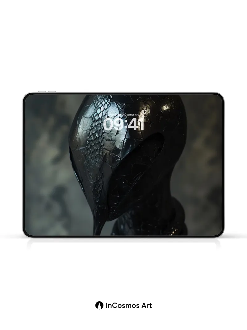 Obsidian Serpent Wallpaper with Cracked Reflections