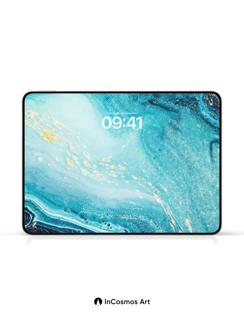 Debug page_description: Did you know that deep-sea corals grow in slow, rhythmic pulses like living sculptures? Here, turquoise currents swirl through a marbled abyss, where light fractures into liquid sapphire and gold dust drifts like stardust on the tide. You're not just looking at a surface—you’re breathing in the quiet pulse of an underwater world, where every curve holds a secret. Share this with your best friend. Send this to your love and swap a matching set. What if your walls could remember the ocean’s heartbeat?